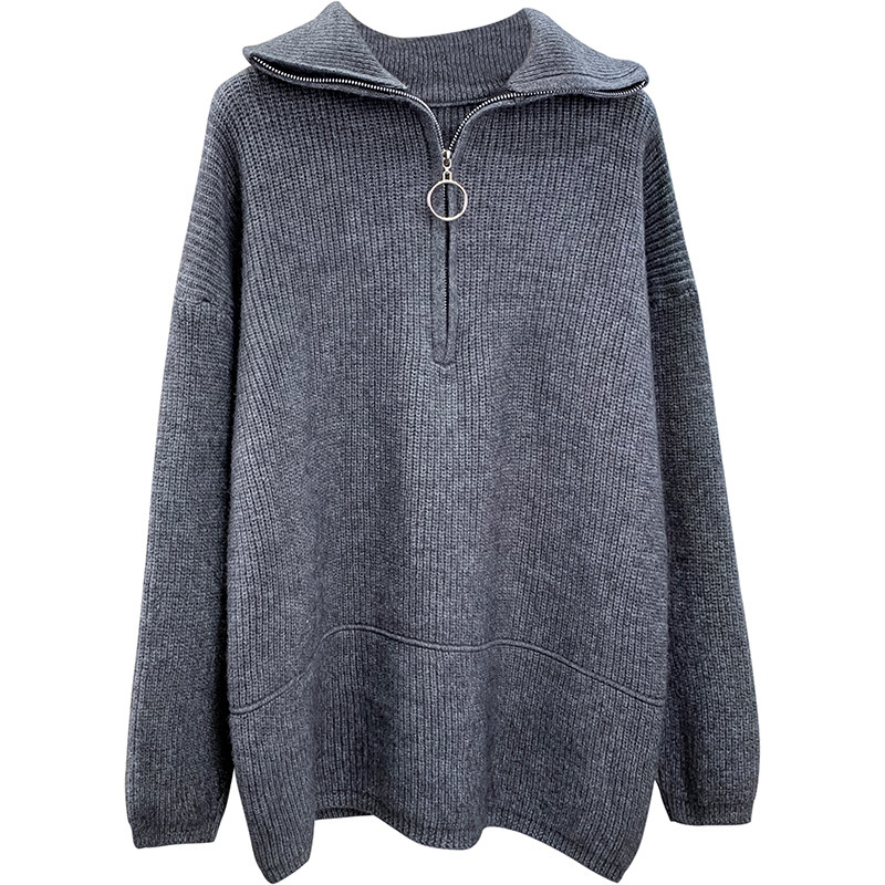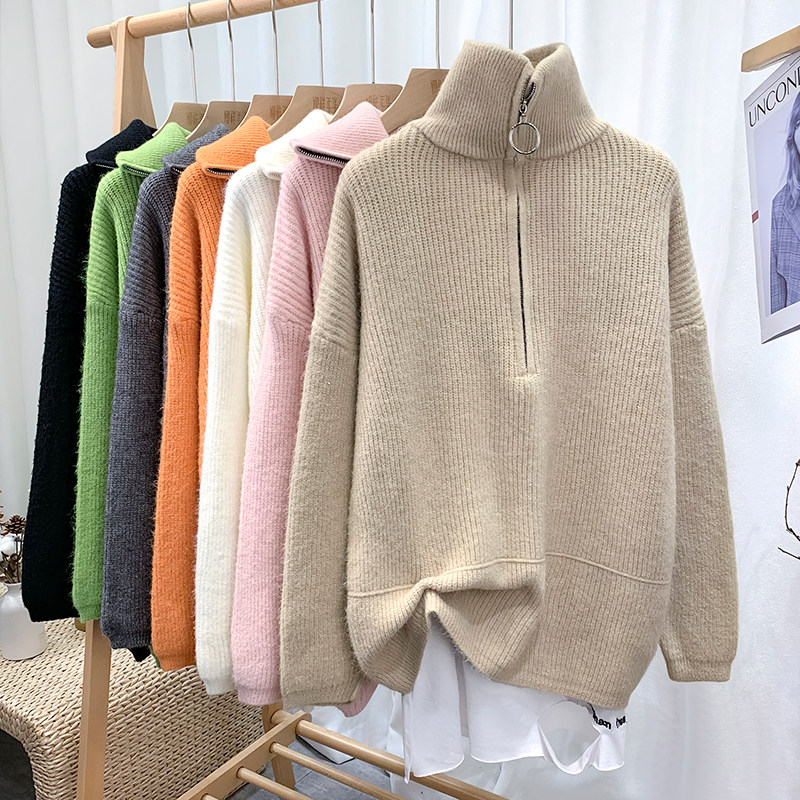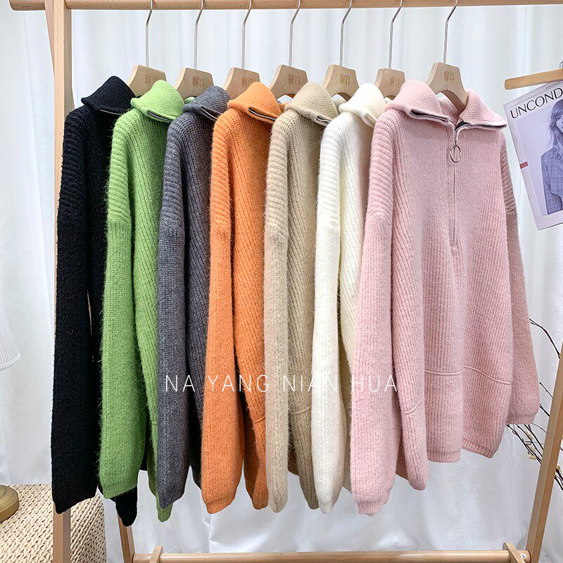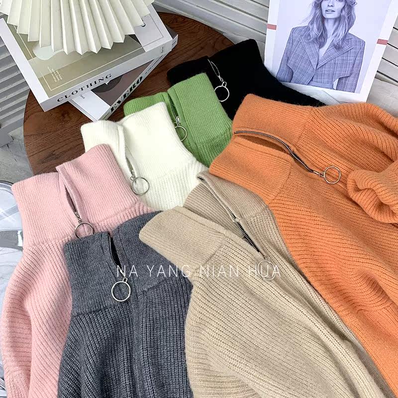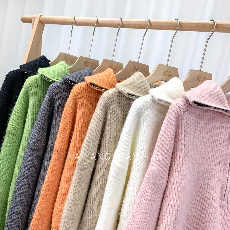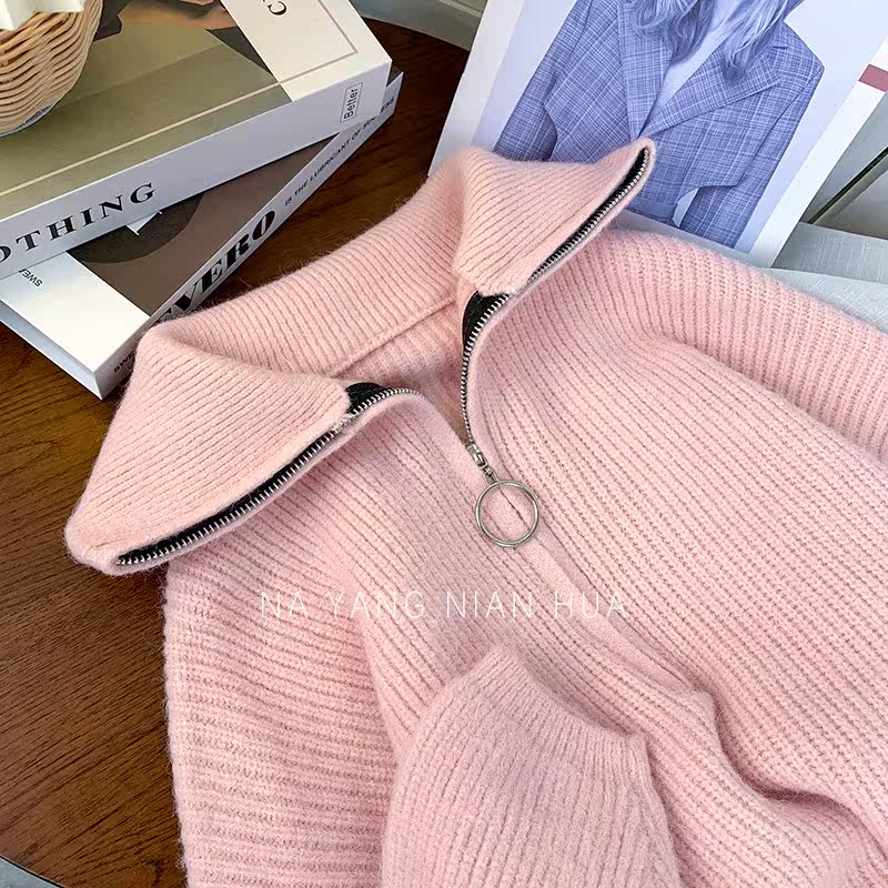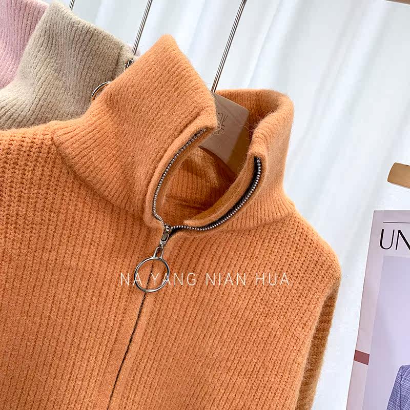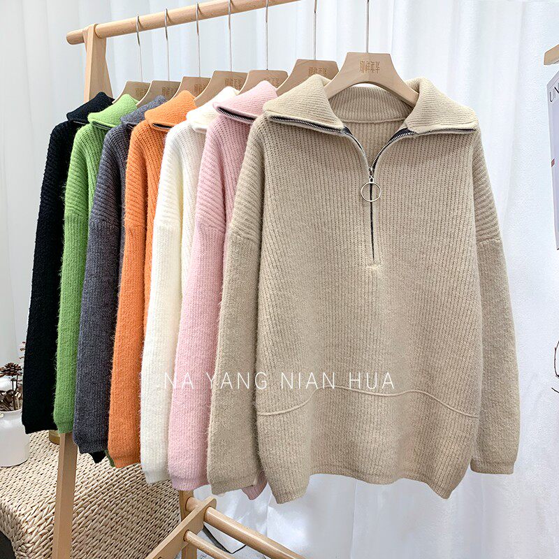 Демисезонный свитер с молнией, ретро трикотажные джинсы с начесом для отдыха, в корейском стиле