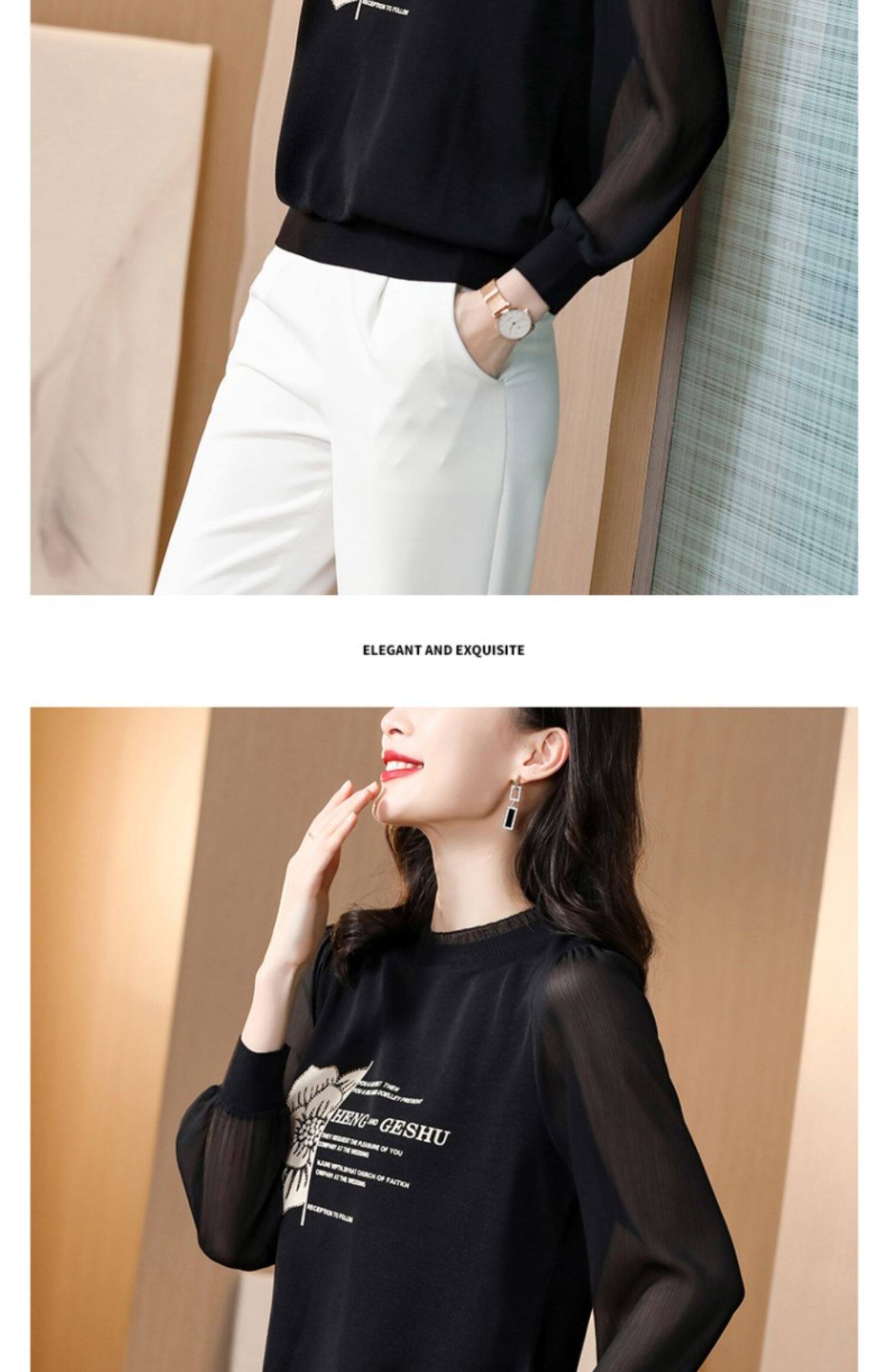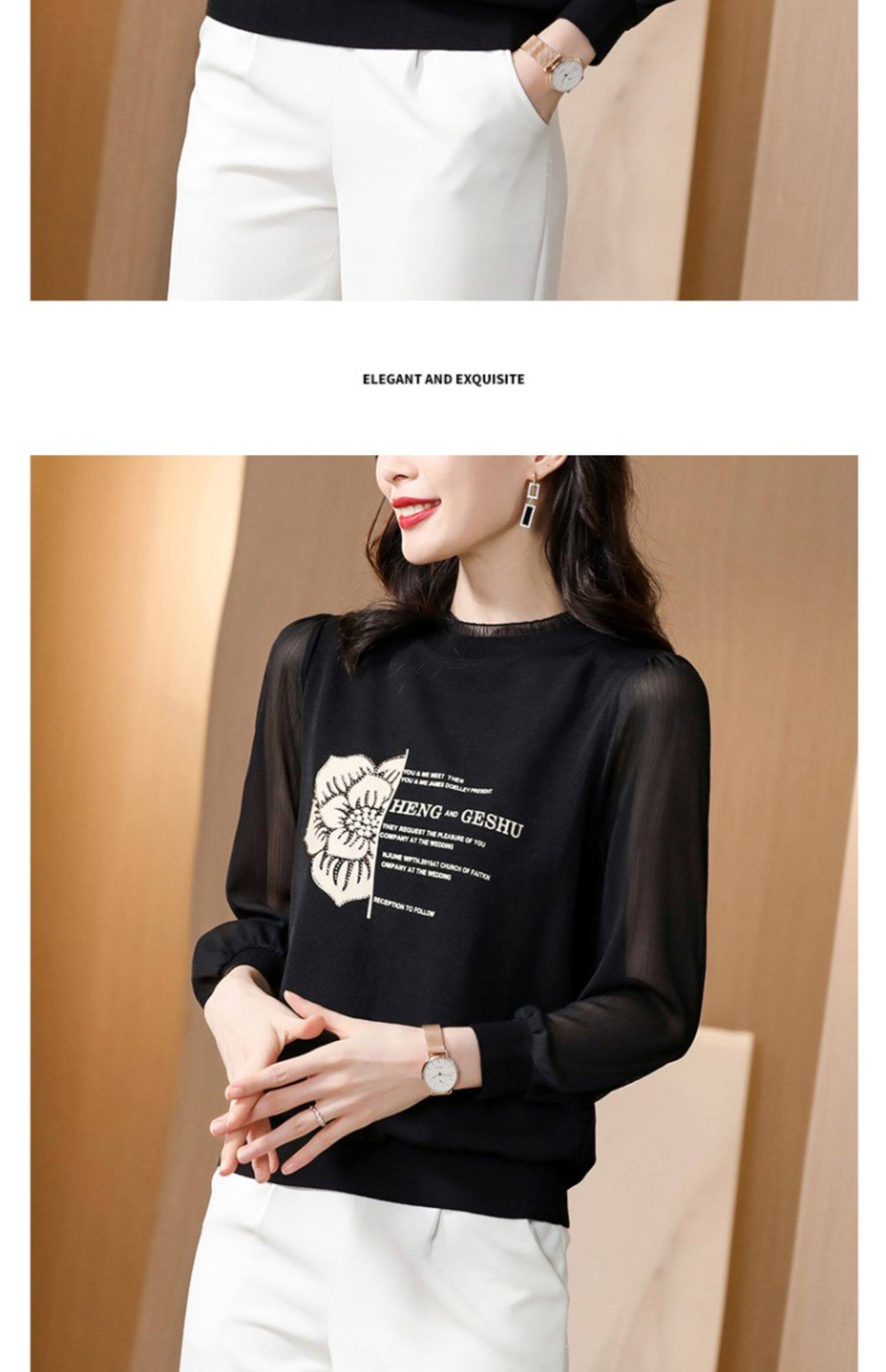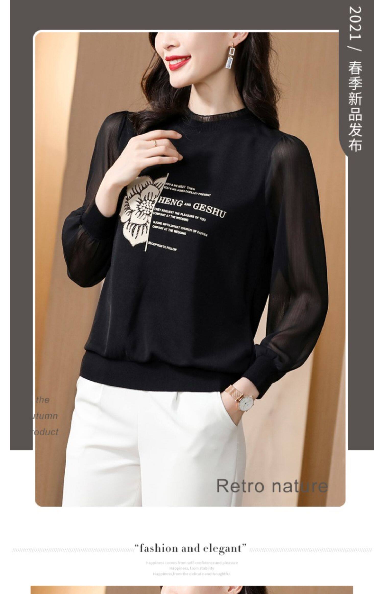 Кружевная шелковая приятная телу весенняя осенняя шифоновая модная элитная рубашка, коллекция 2022, в западном стиле