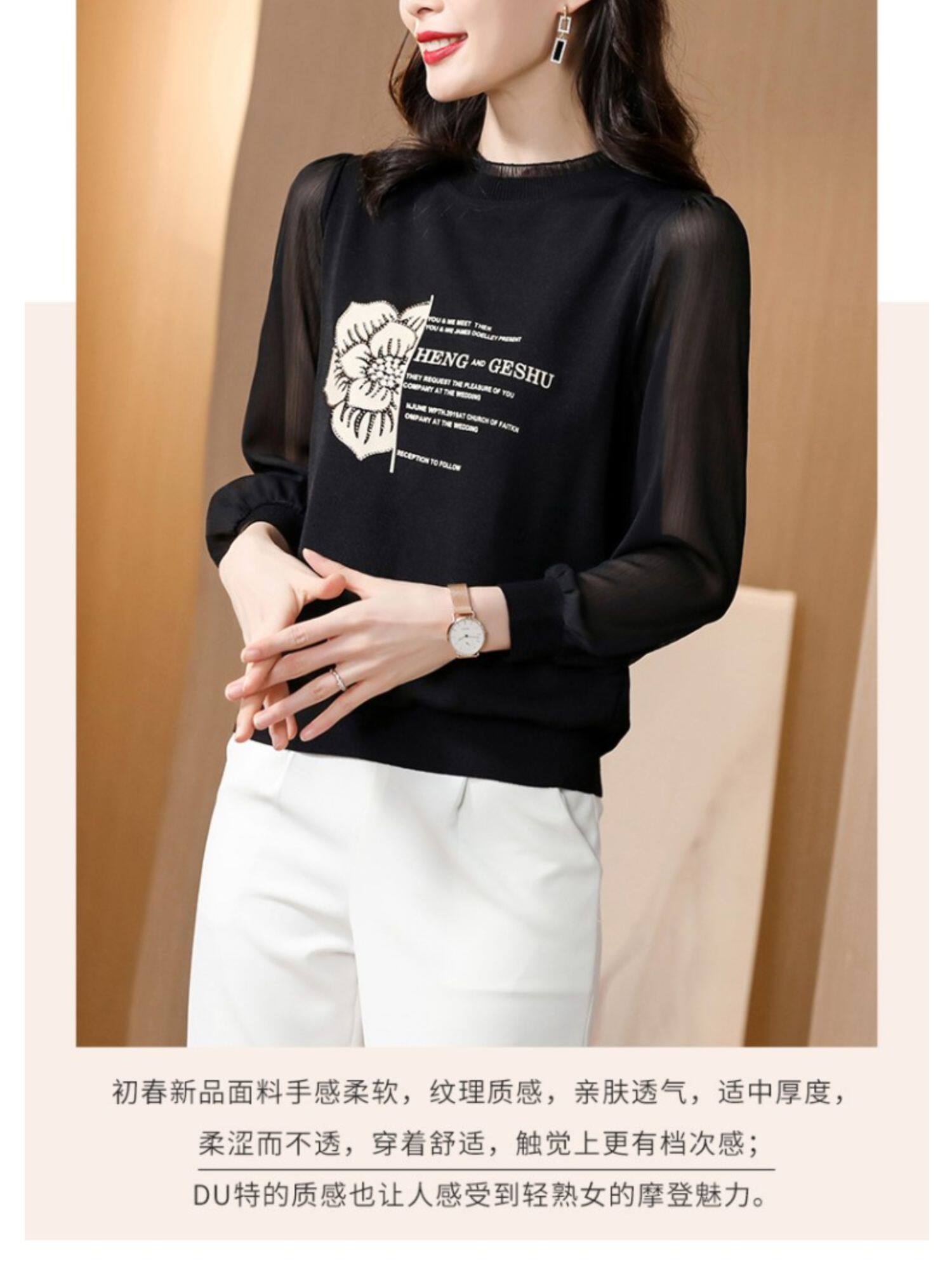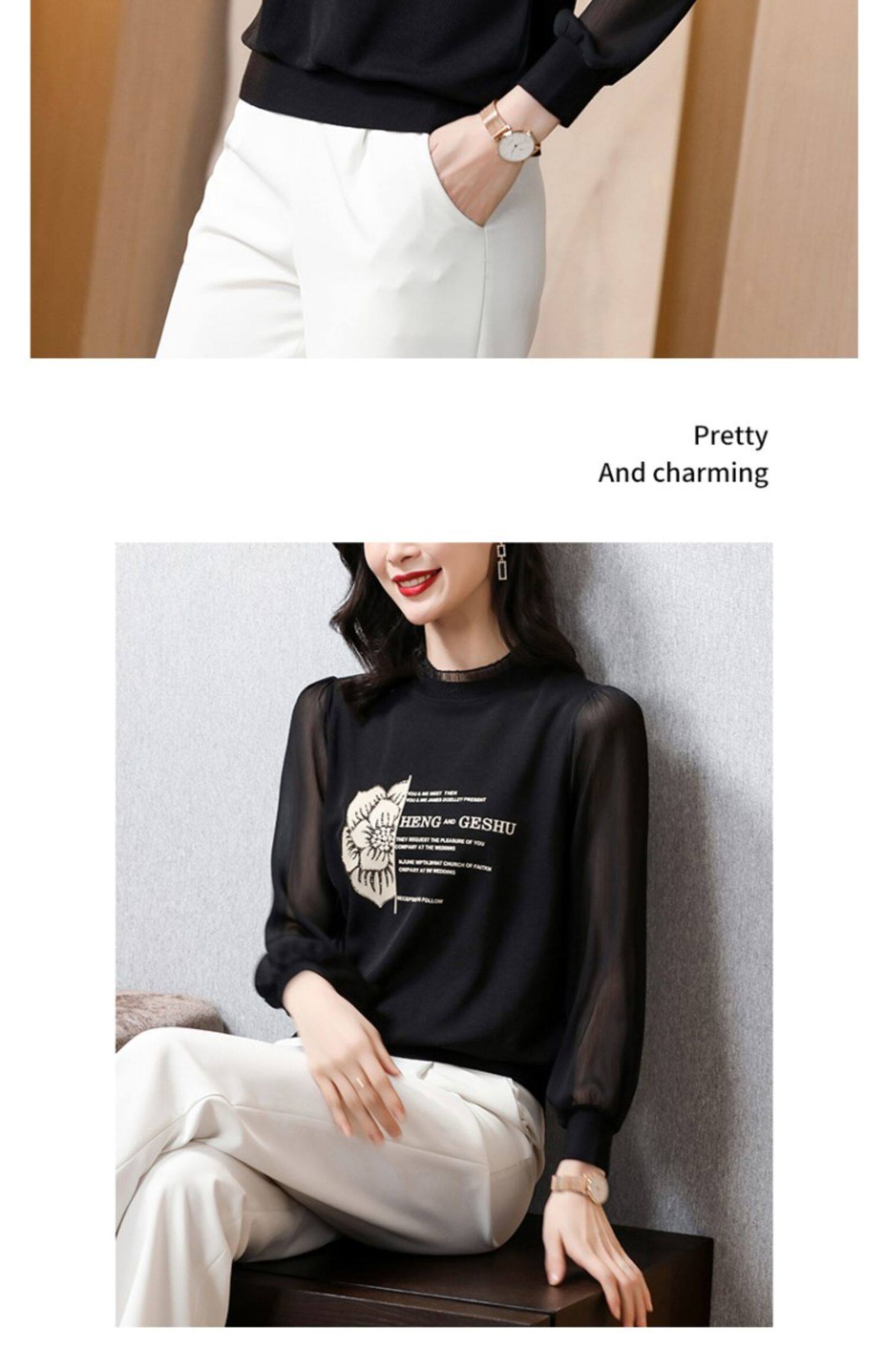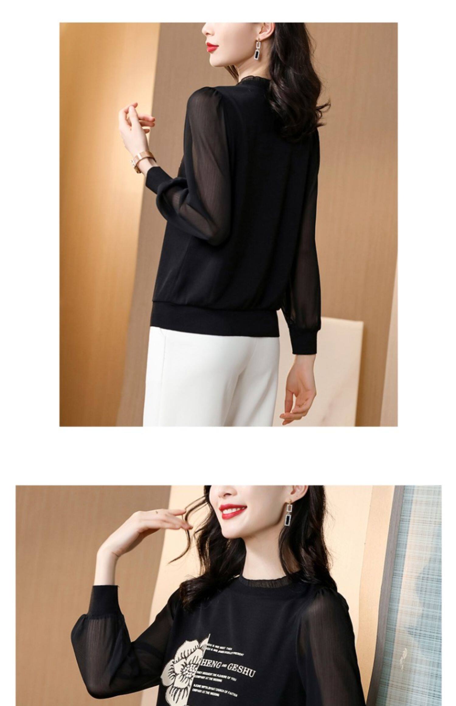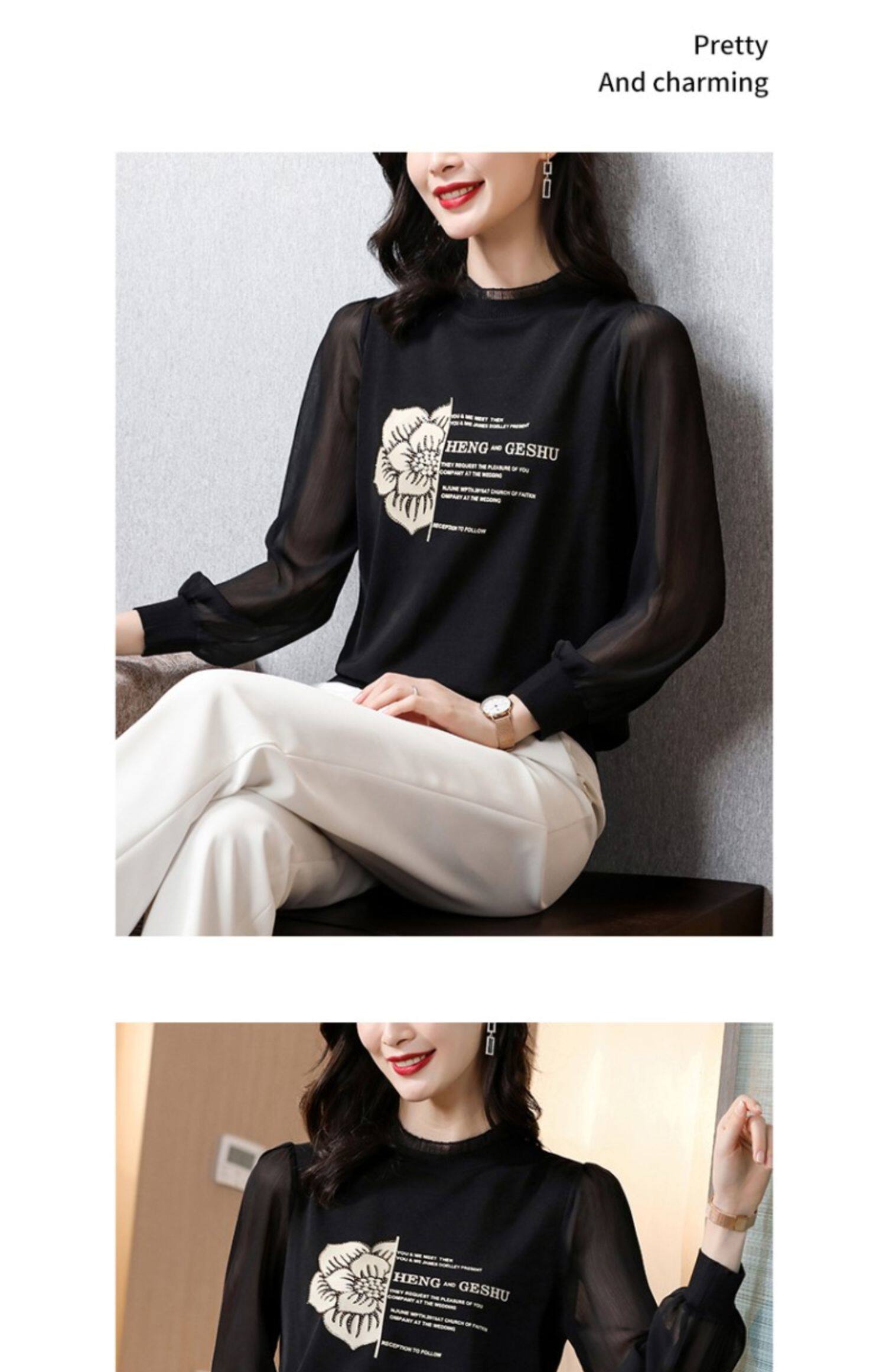 Кружевная шелковая приятная телу весенняя осенняя шифоновая модная элитная рубашка, коллекция 2022, в западном стиле