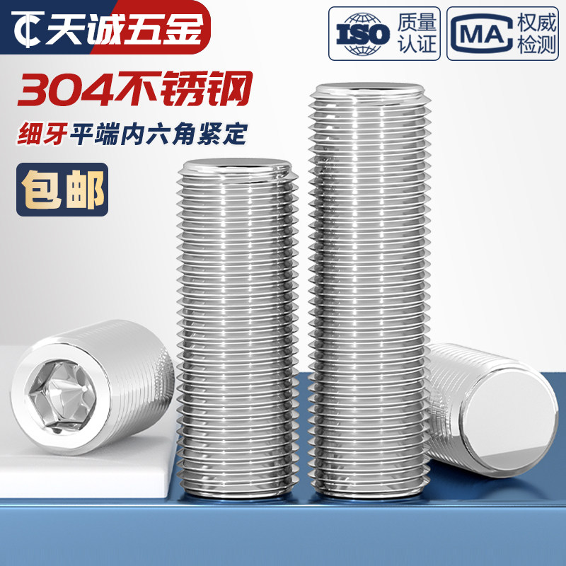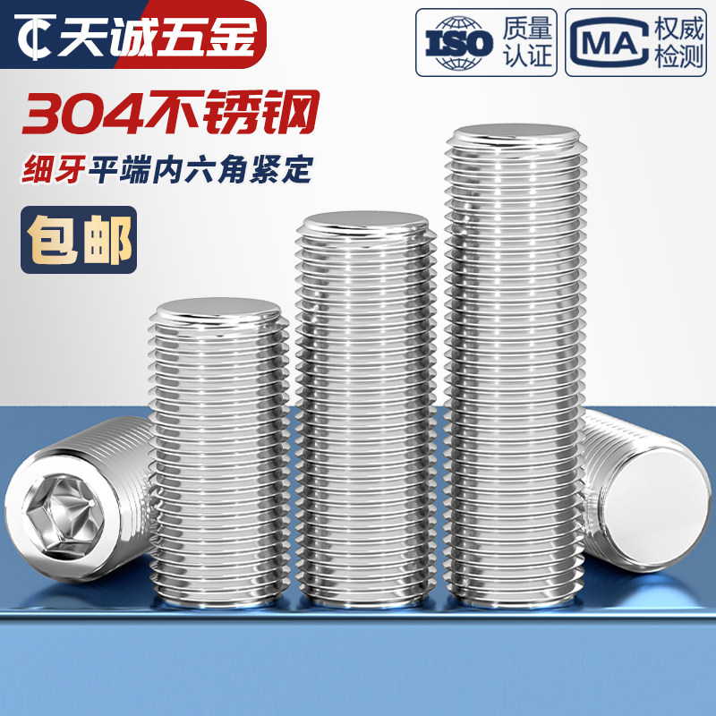 Установочный винт с тонкой резьбой и плоским концом из нержавеющей стали 304, без головки, шестигранный станок, установочный винт, стопор, платежные аксессуары