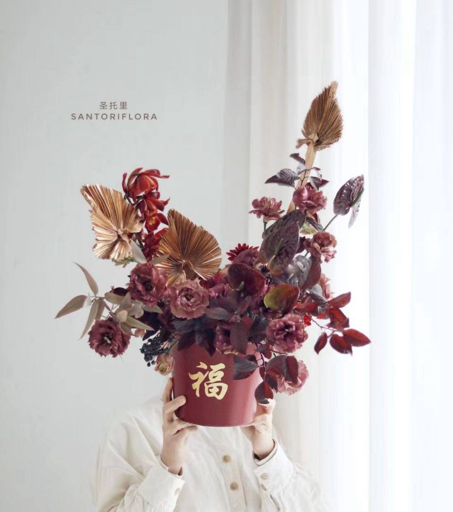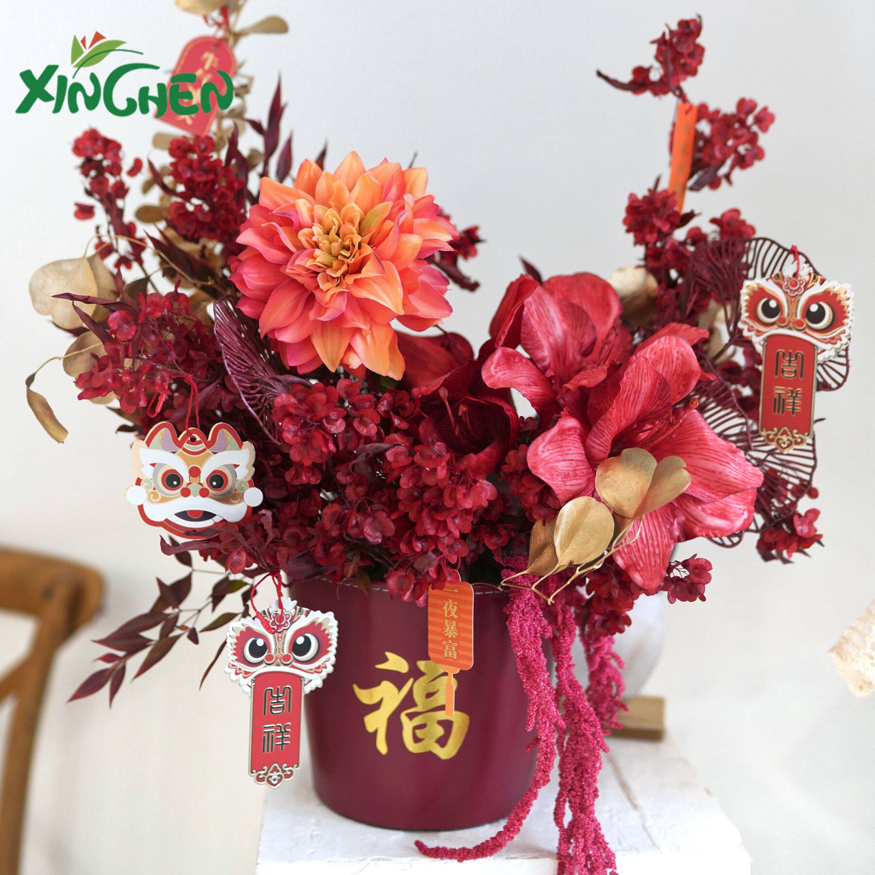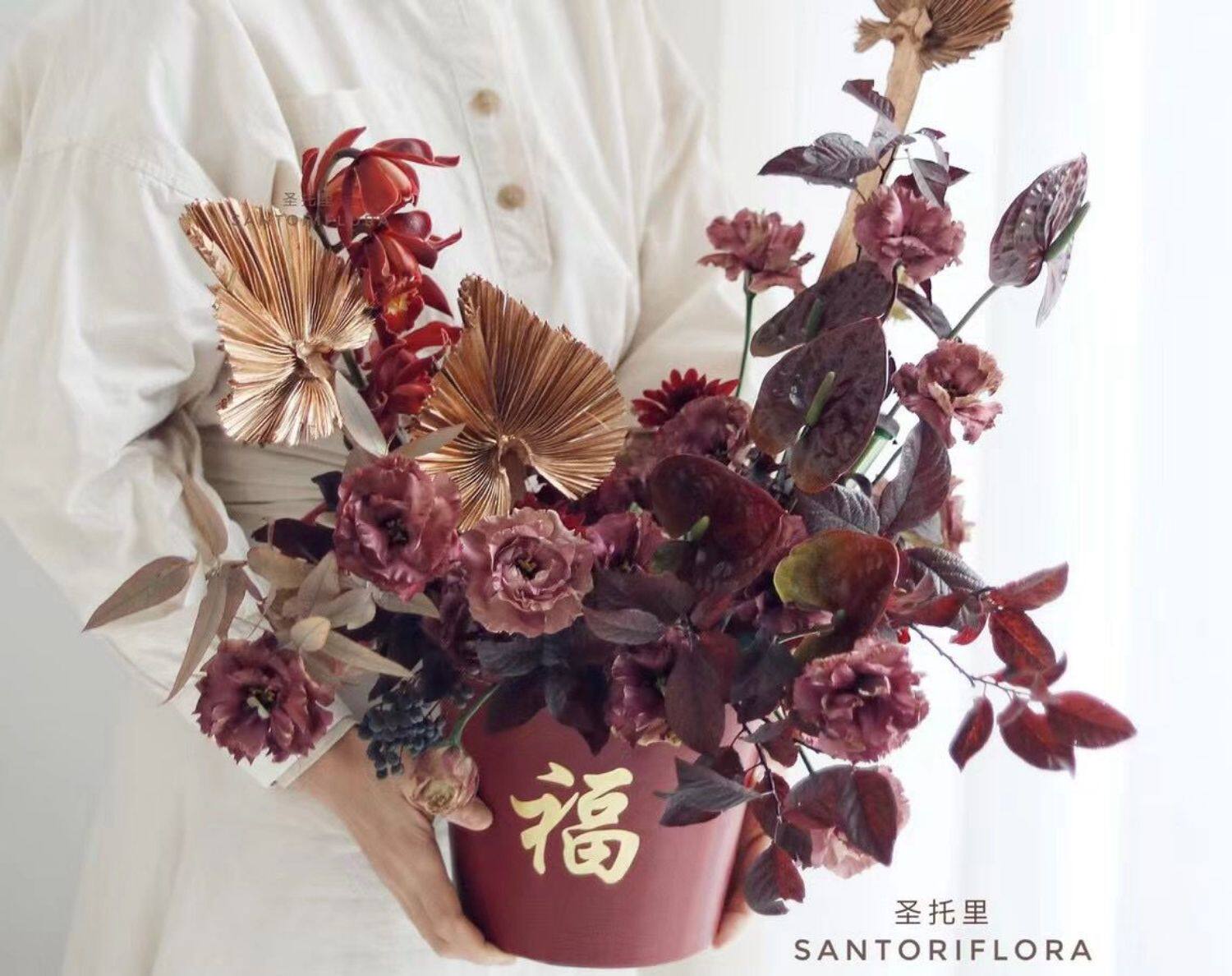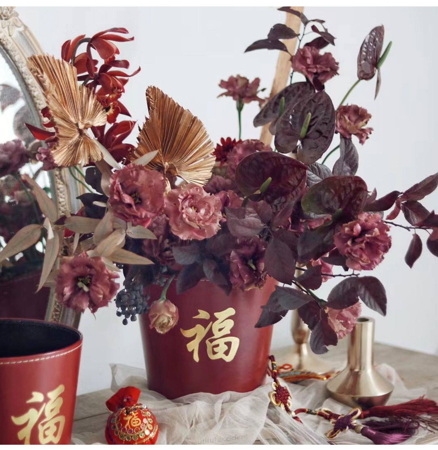 Кожаная ствола благословения. Отдельная упаковка новогоднего ведра благословения, цветущий цвет