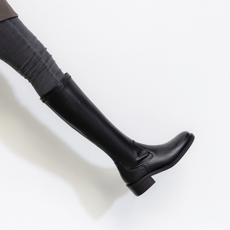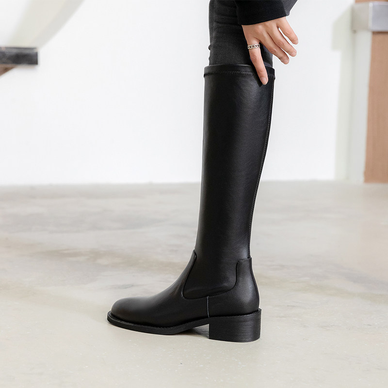 Демисезонные высокие сапоги, универсальные эластичные ботинки с молнией, в корейском стиле, простой и элегантный дизайн
