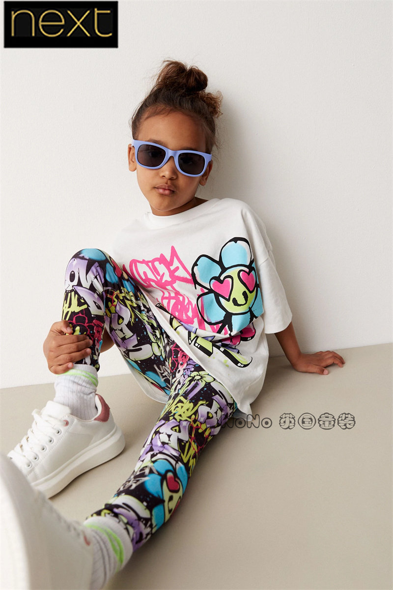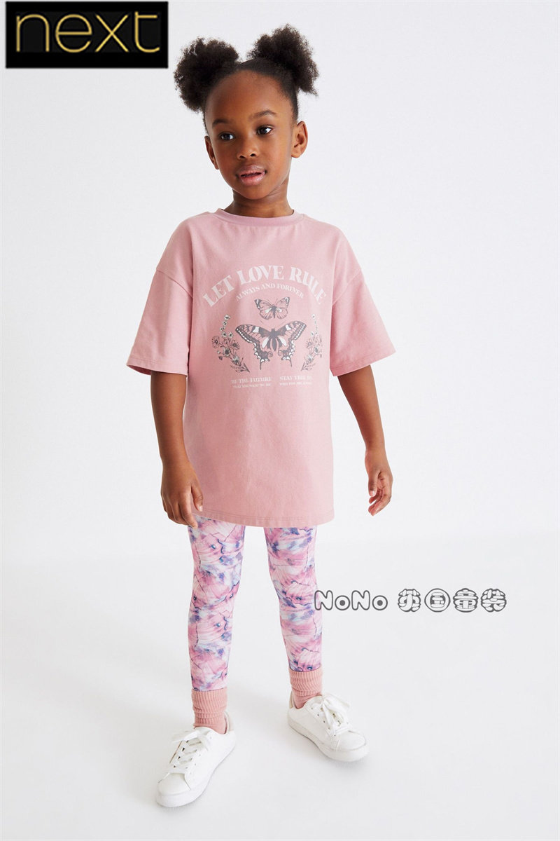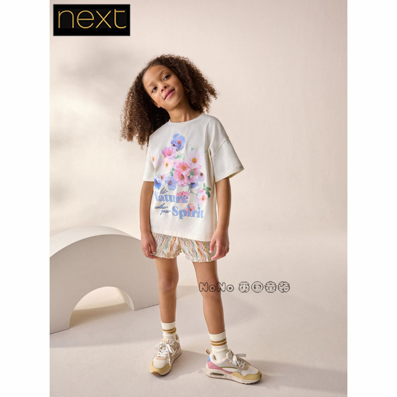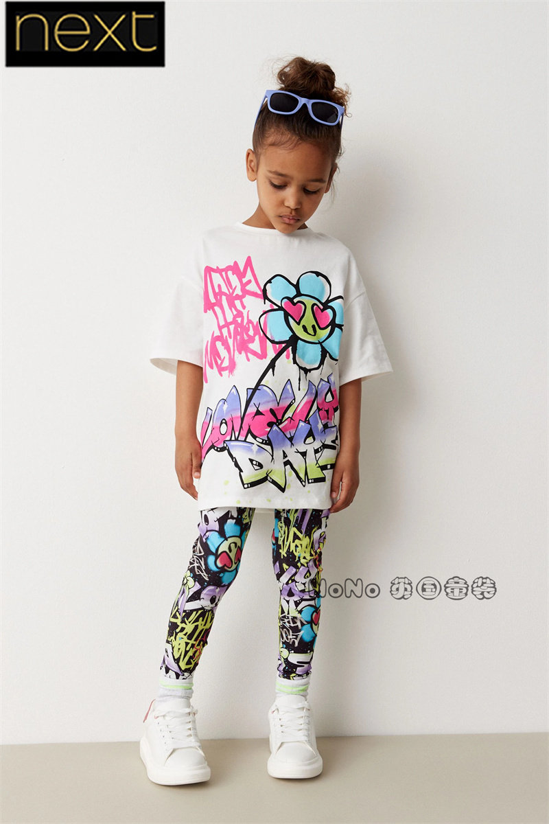 Next, футболка, леггинсы, штаны, (в наличии на складе), подходит для подростков, семейный стиль, в цветочек, короткий рукав