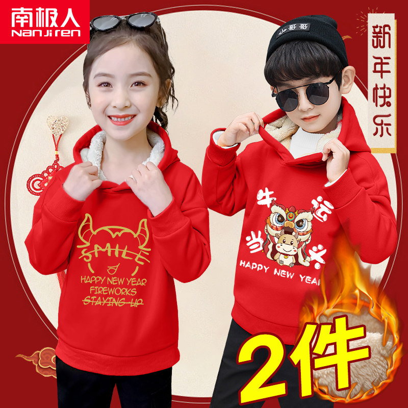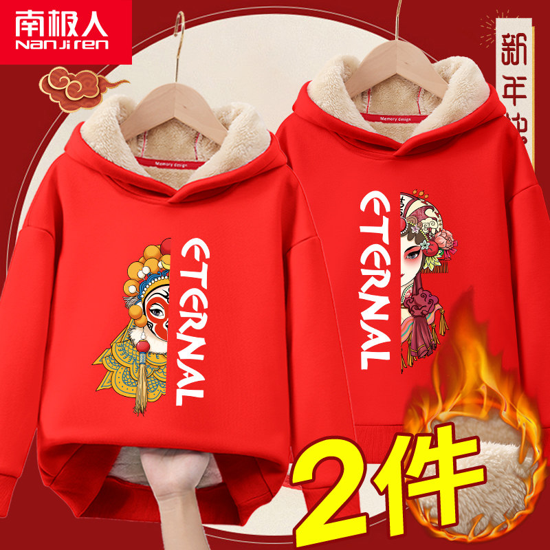 Детская красная бархатная демисезонная утепленная толстовка подходит для мужчин и женщин, увеличенная толщина, подходит для подростков