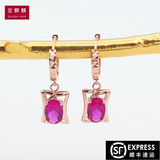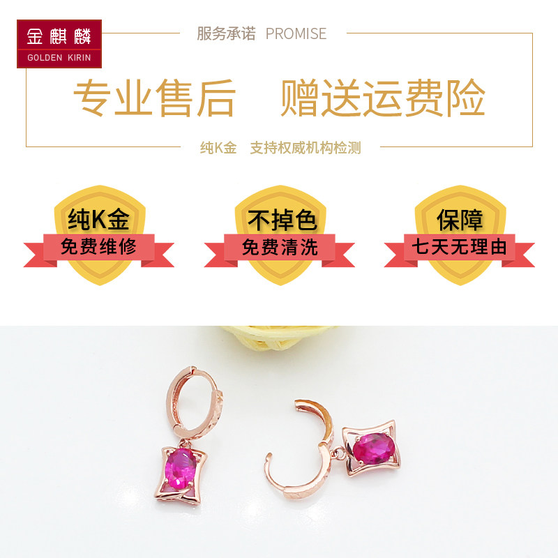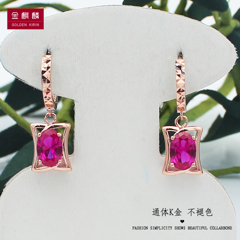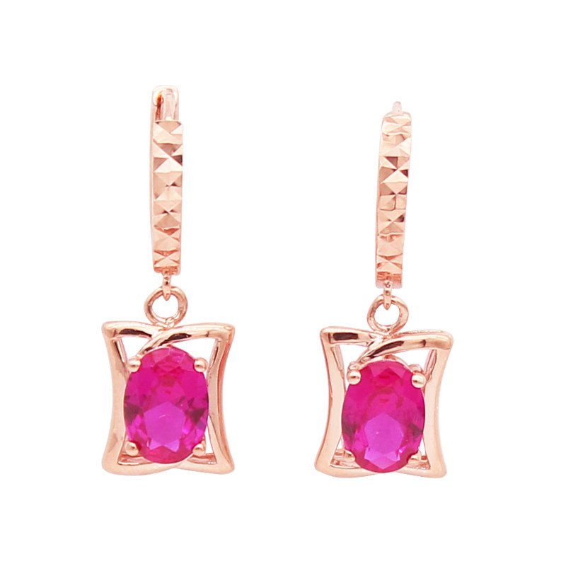 金奇麟 Золотой рубиновый прямоугольный велосипед, серьги, Россия, 14 карат, розовое золото