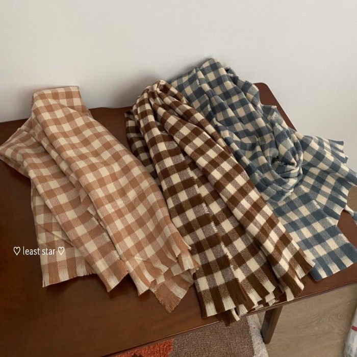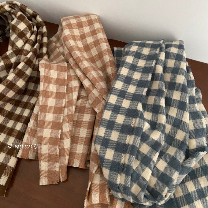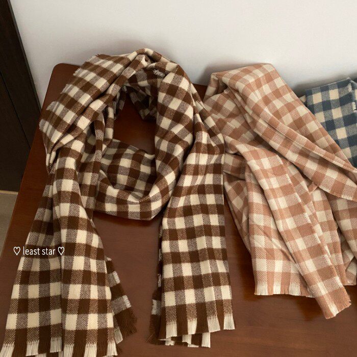 Японский нежный клетчатый шарф мягкий и удобный
