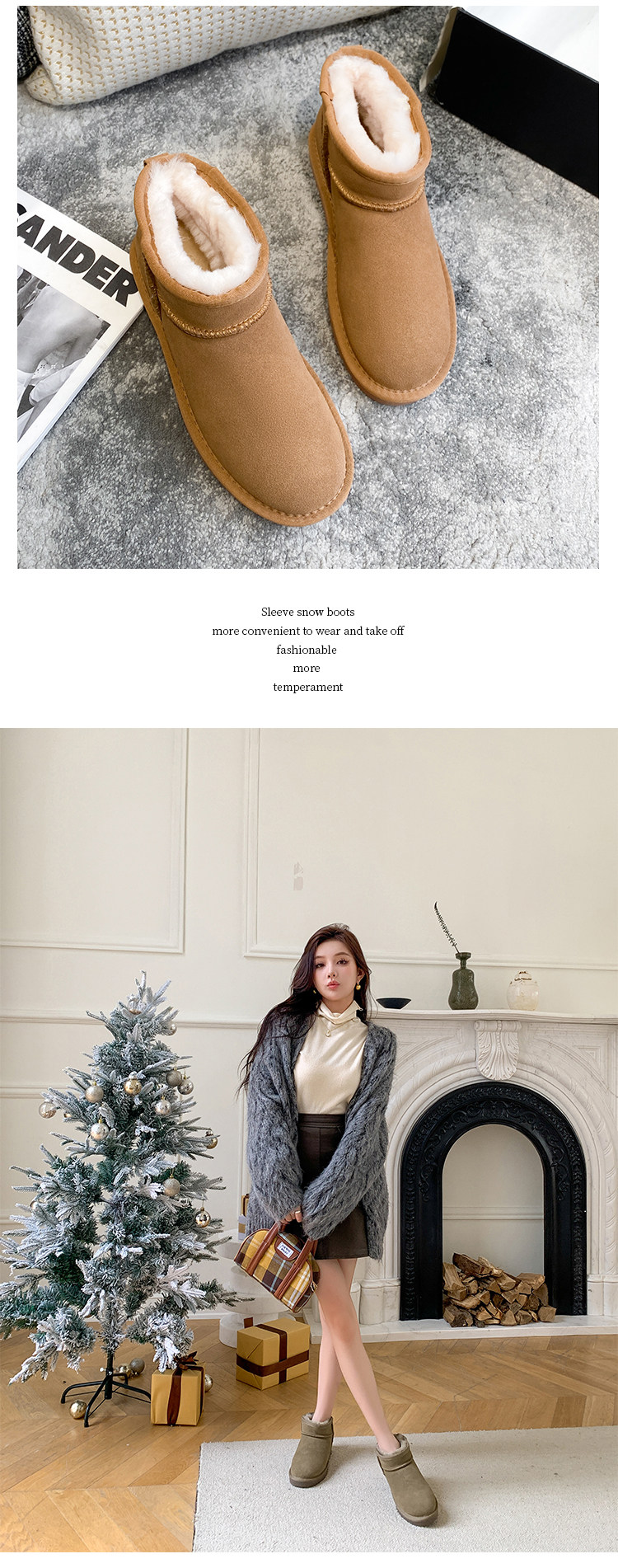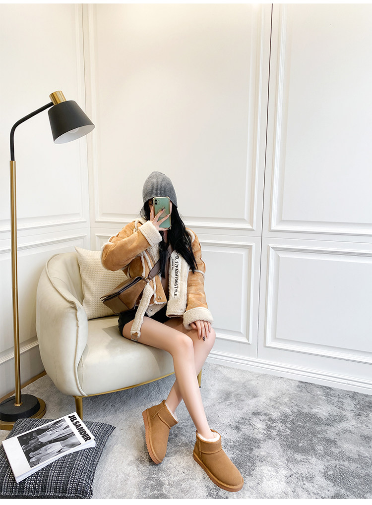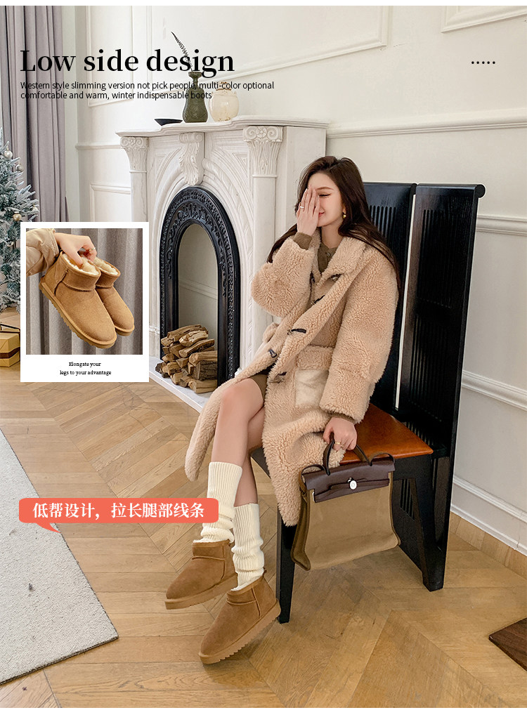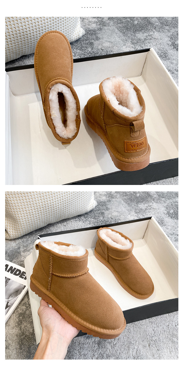 Новинка 2025 года: мини-зимние сапоги Zhou Dongyu из натурального коровьего меха, бархатная утолщенная зимняя хлопковая обувь, короткие сапоги с низким берцем