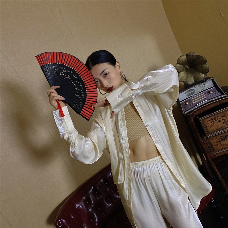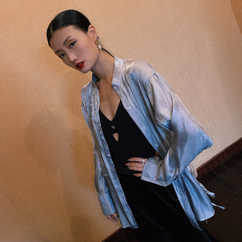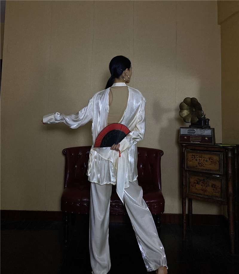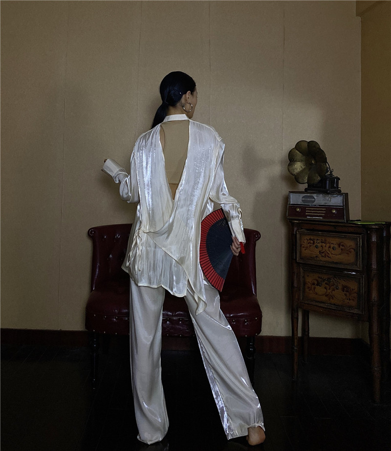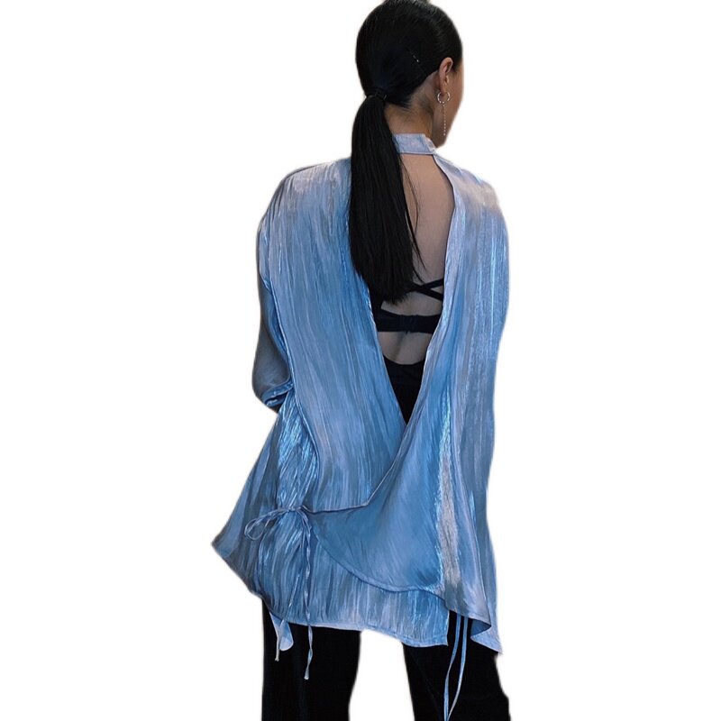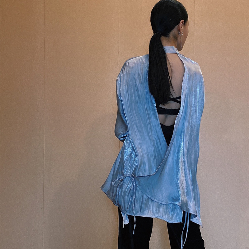 Модная рубашка, дизайнерский ремень, с открытой спиной, тренд сезона, китайский стиль
