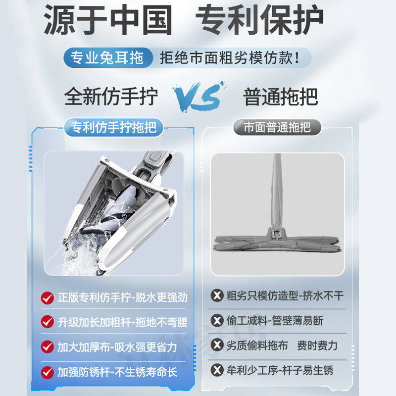 - [Стандартная конфигурация] В комплект плоской швабры входит тряпка*2+.