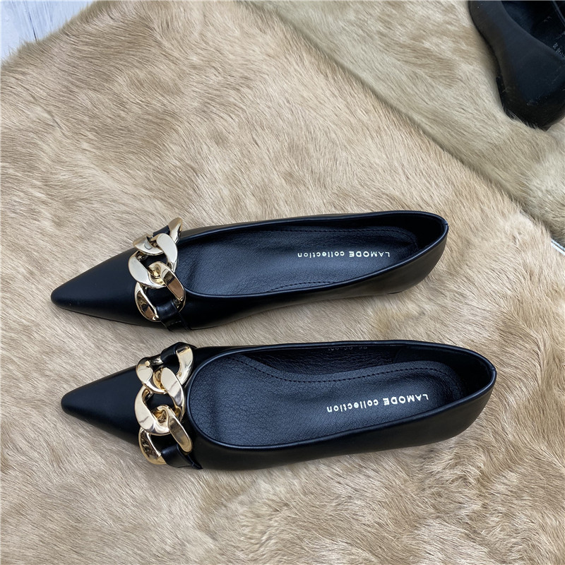 Весенняя модная металлическая универсальная плоская подошва обувь с заостренным носом с низким вырезом, мягкая подошва