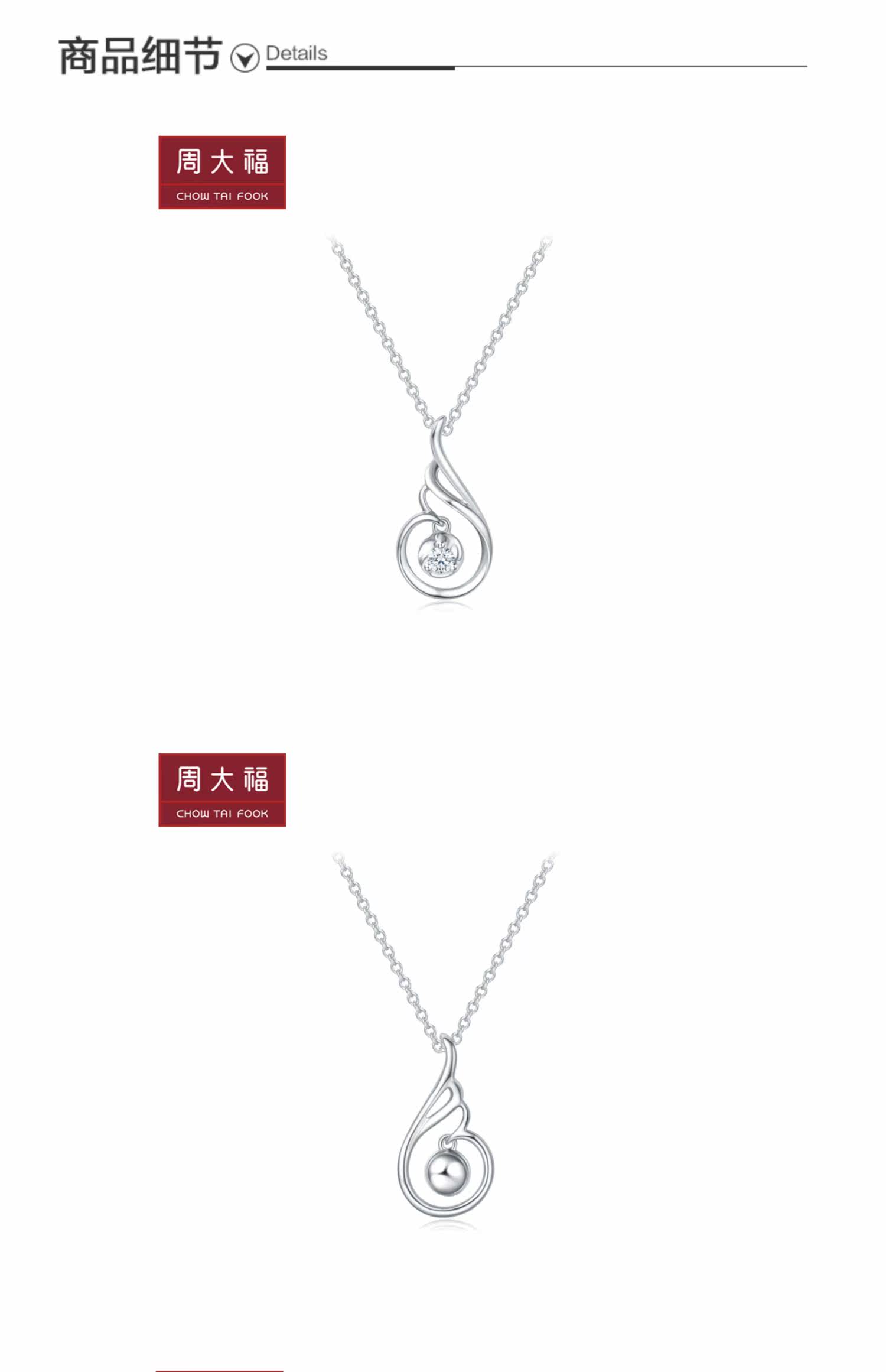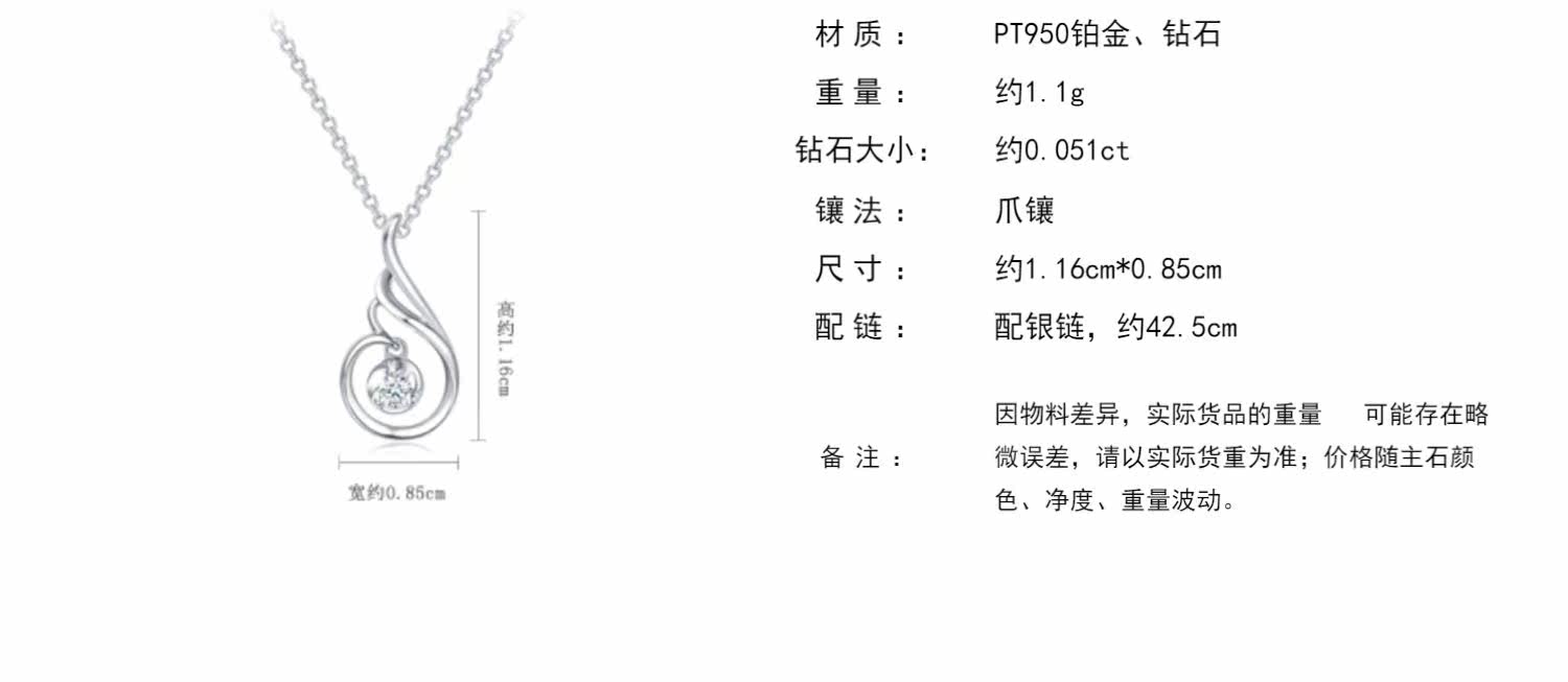 周大福 Ювелирное украшение, платиновая бриллиантовая подвеска, простой и элегантный дизайн, платина 950 пробы