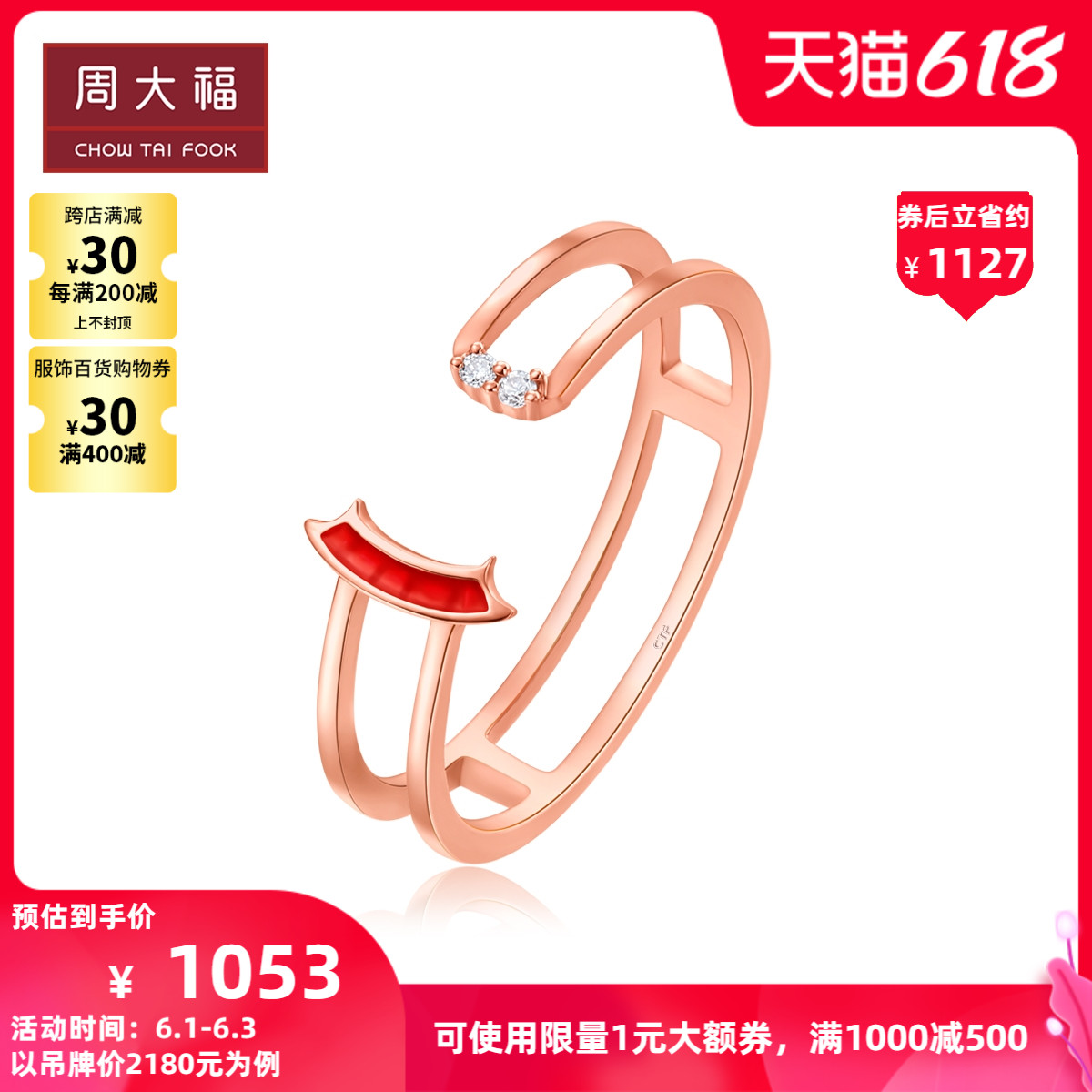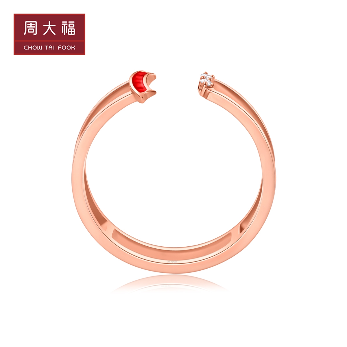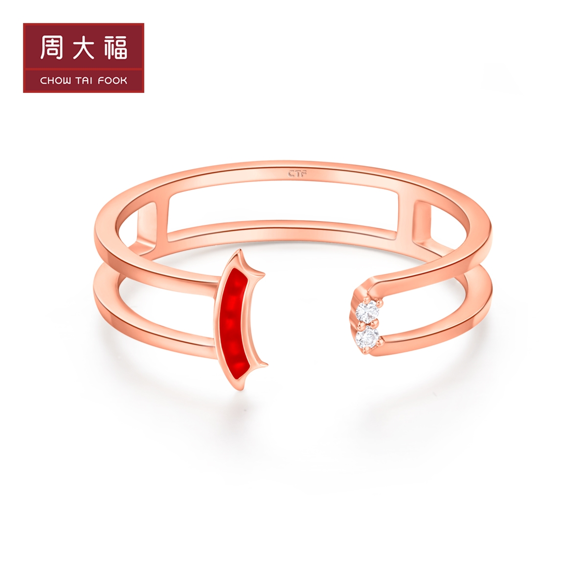周大福 Dafu Red Biwa Zhuyi два кольца 18K золотое бриллиантовое кольцо U182282