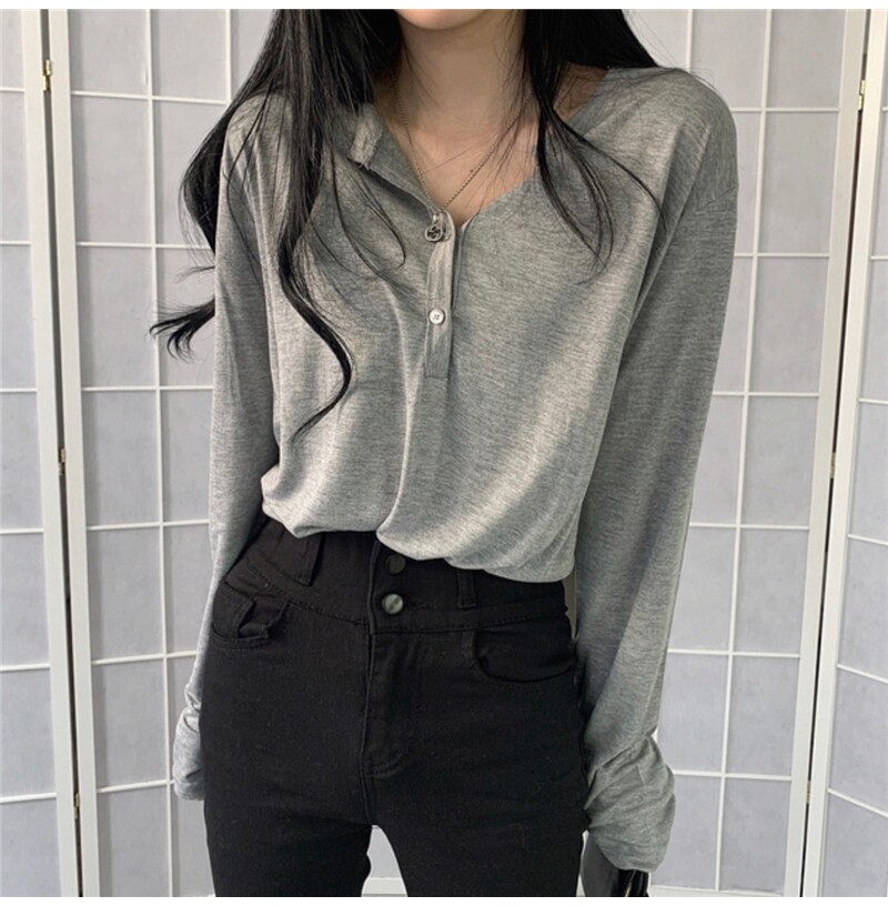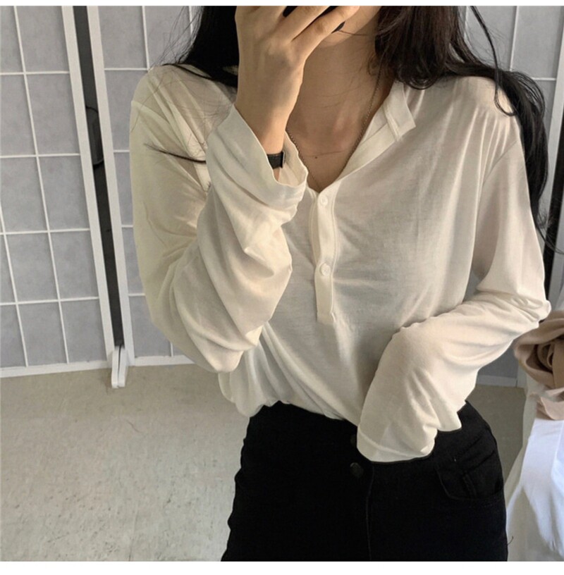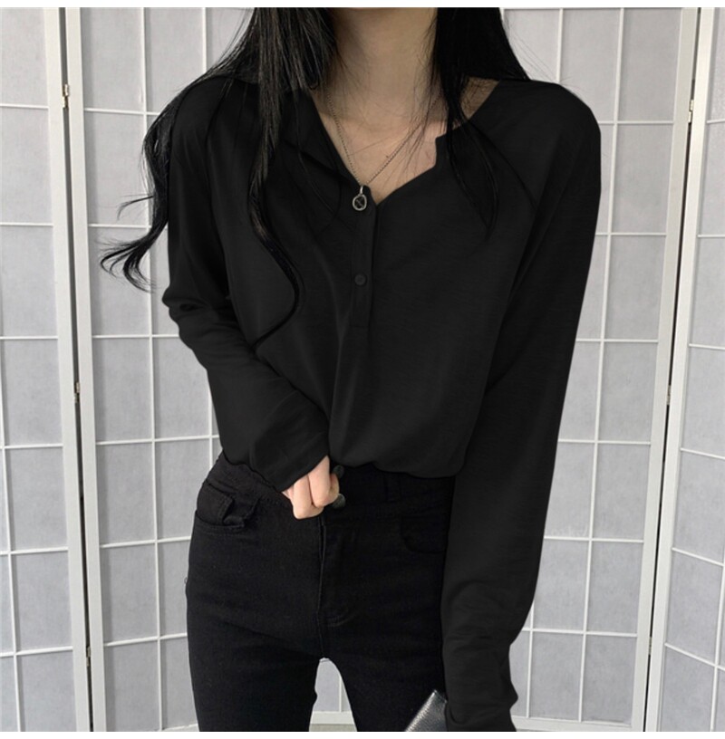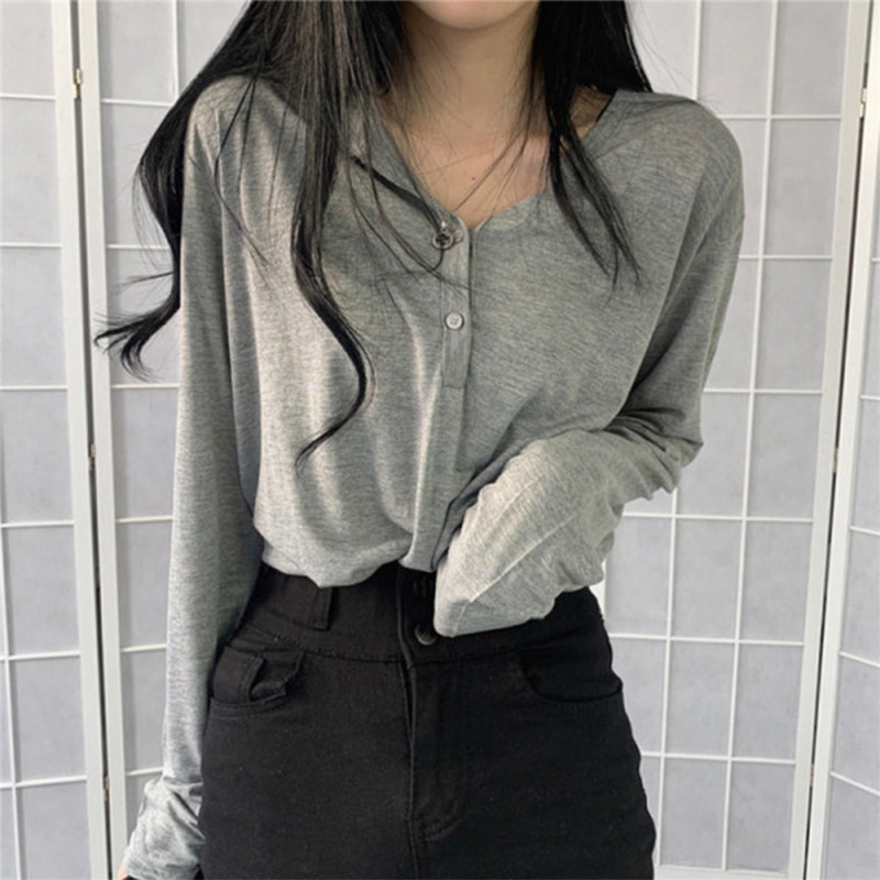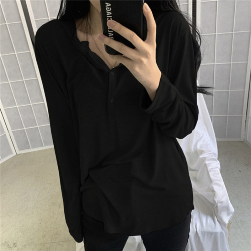 Тонкий базовый лонгслив, осенняя футболка polo для отдыха, в корейском стиле, 2020, свободный крой