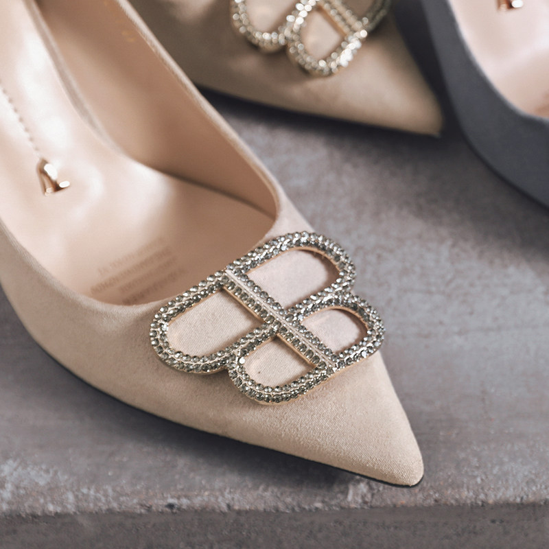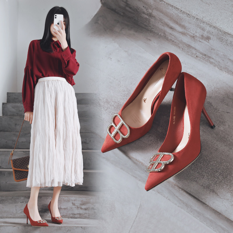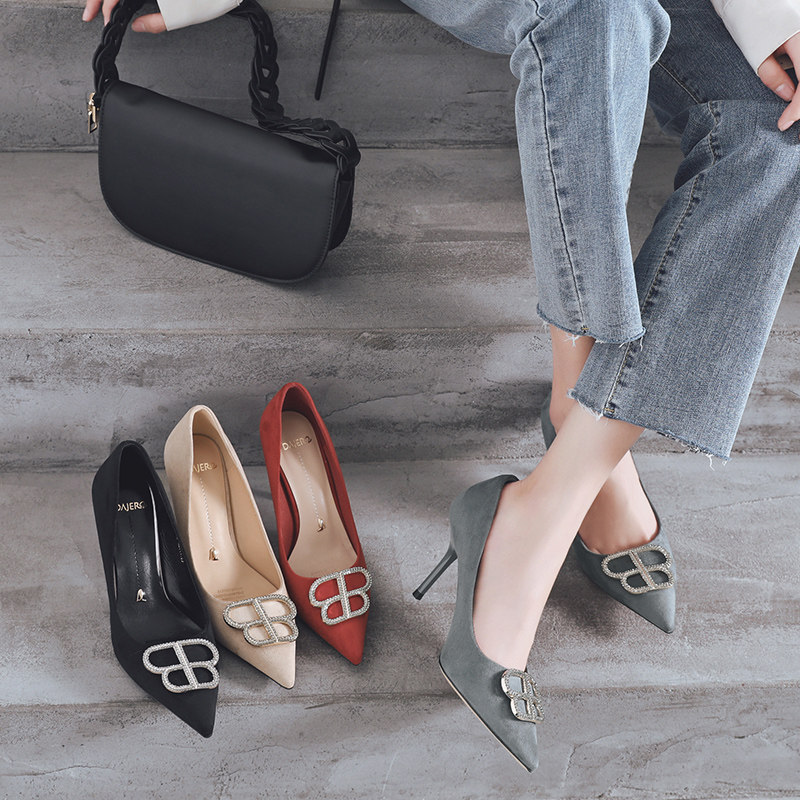 一代佳人 Универсальные замшевые туфли на высоком каблуке с низким вырезом, коллекция 2021, тренд сезона