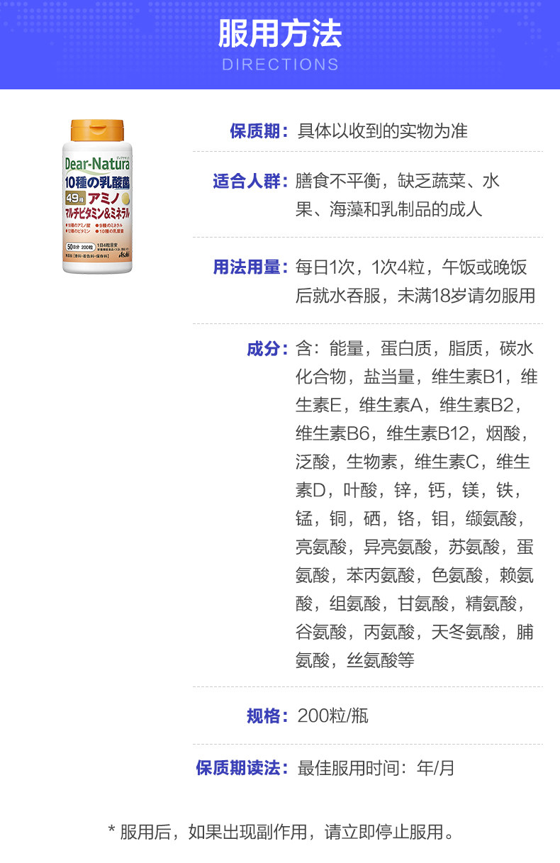 Япония импортировал Asahi как Asah Dear-Natura49 Комплексные витамины+минералы 200 капсул