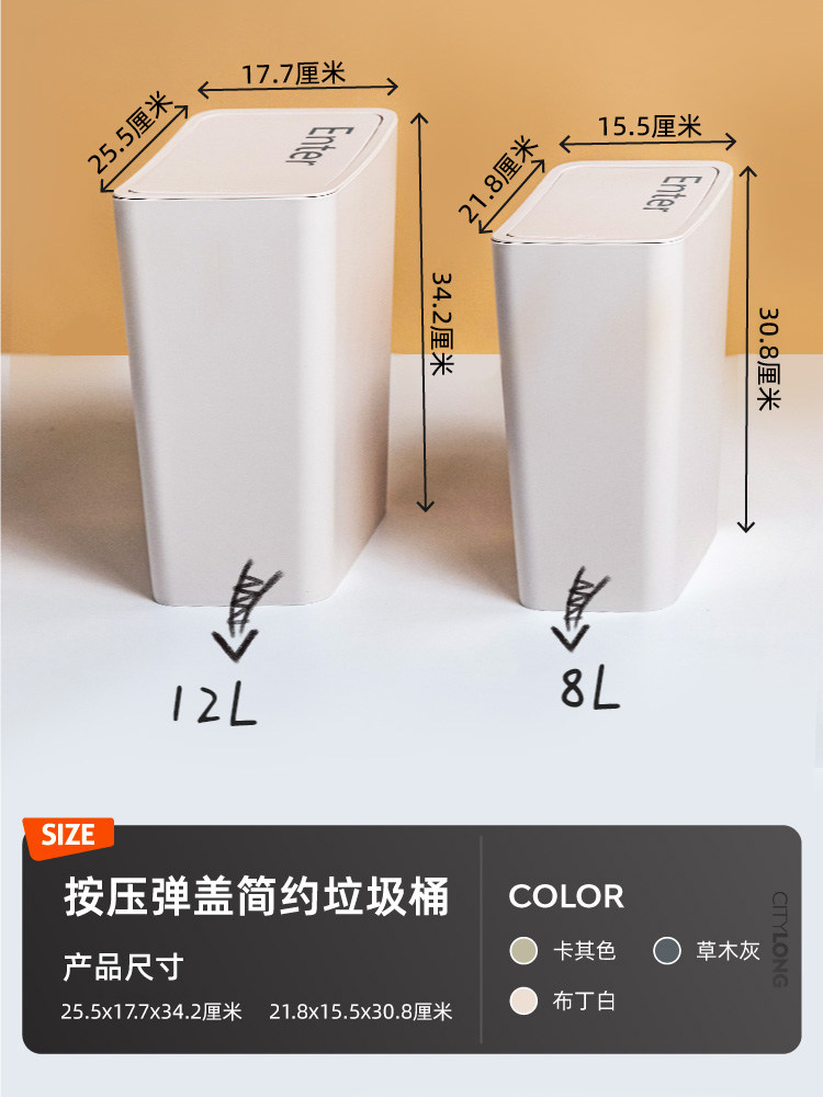 Xitianlong Trash Bin Home Living Room спальня с узкой стежкой туалетной туалет с крышкой, кнопкой для предотвращения вонючих корзин