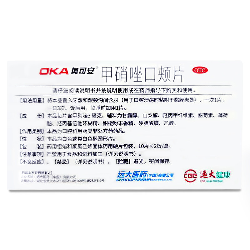 奥可安 Метронидазол, буккальные таблетки, 20 таблеток, язва полости рта, гингивит, пародонтит, перикоронит, бесплатная доставка