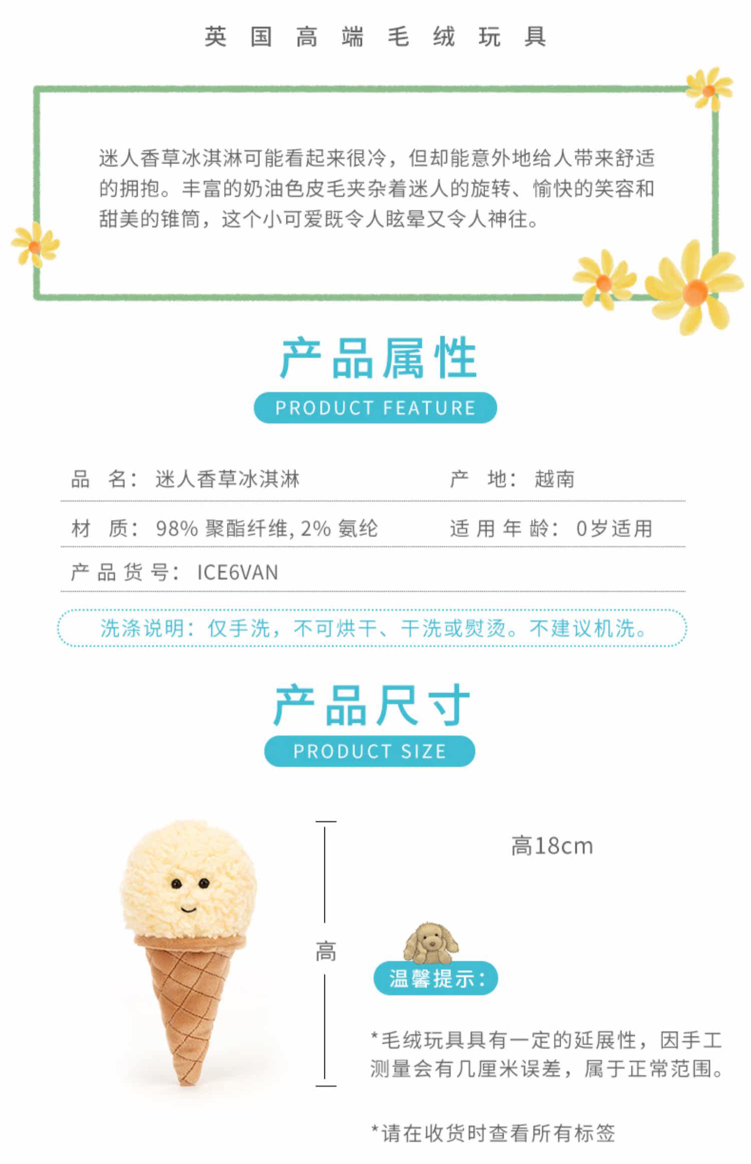 Jellycat, мягкая комфортная милая плюшевая игрушка для мороженого