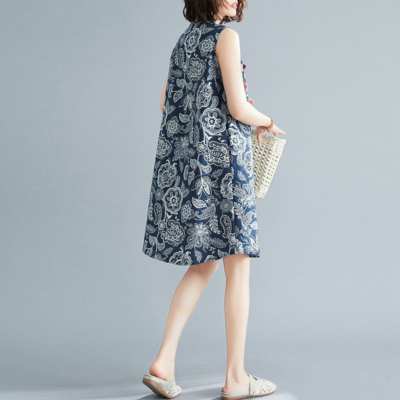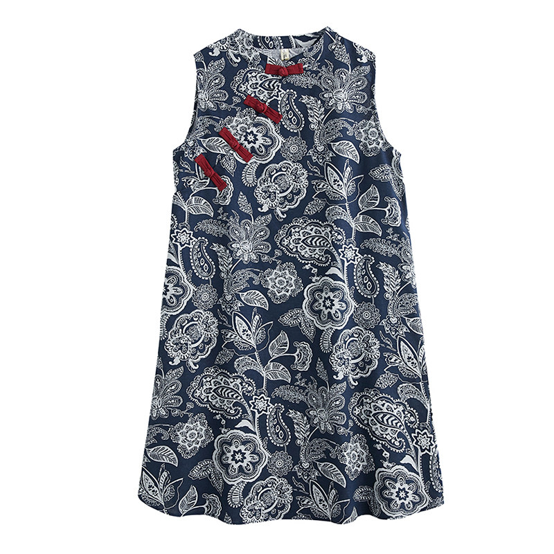 Ретро длинное ципао без рукавов, платье без рукавов, из хлопка и льна, длина миди, средней длины, свободный крой, А-силуэт