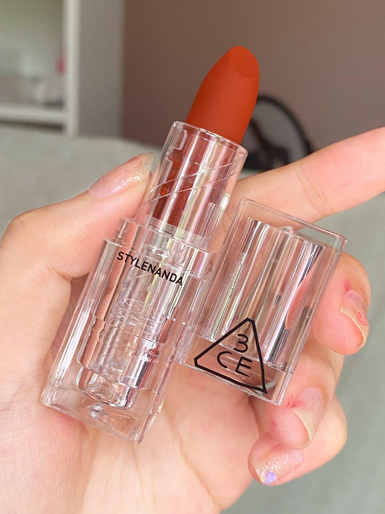 3CE, акриловая прозрачная матовая помада, полупрозрачная растушевка