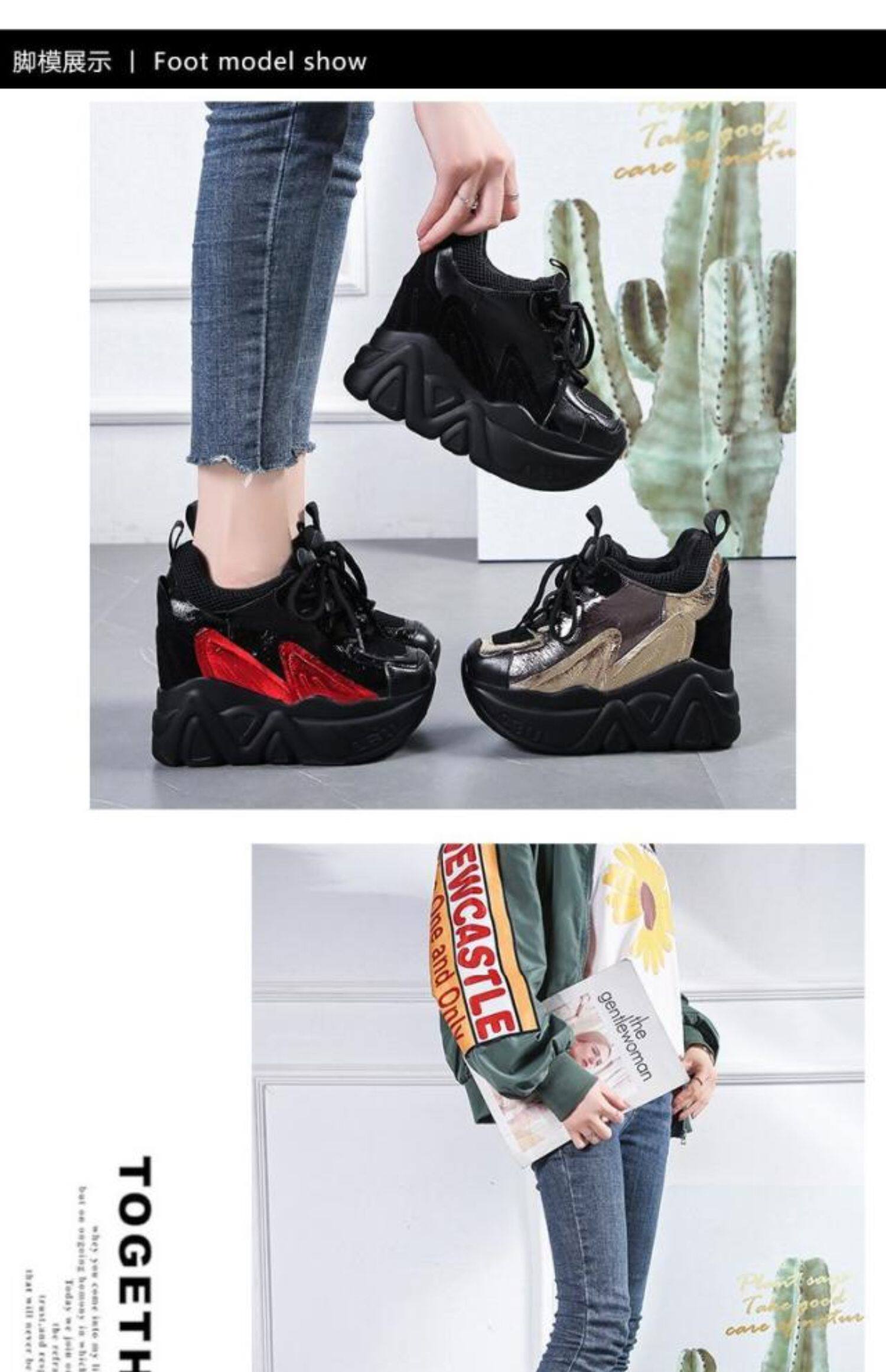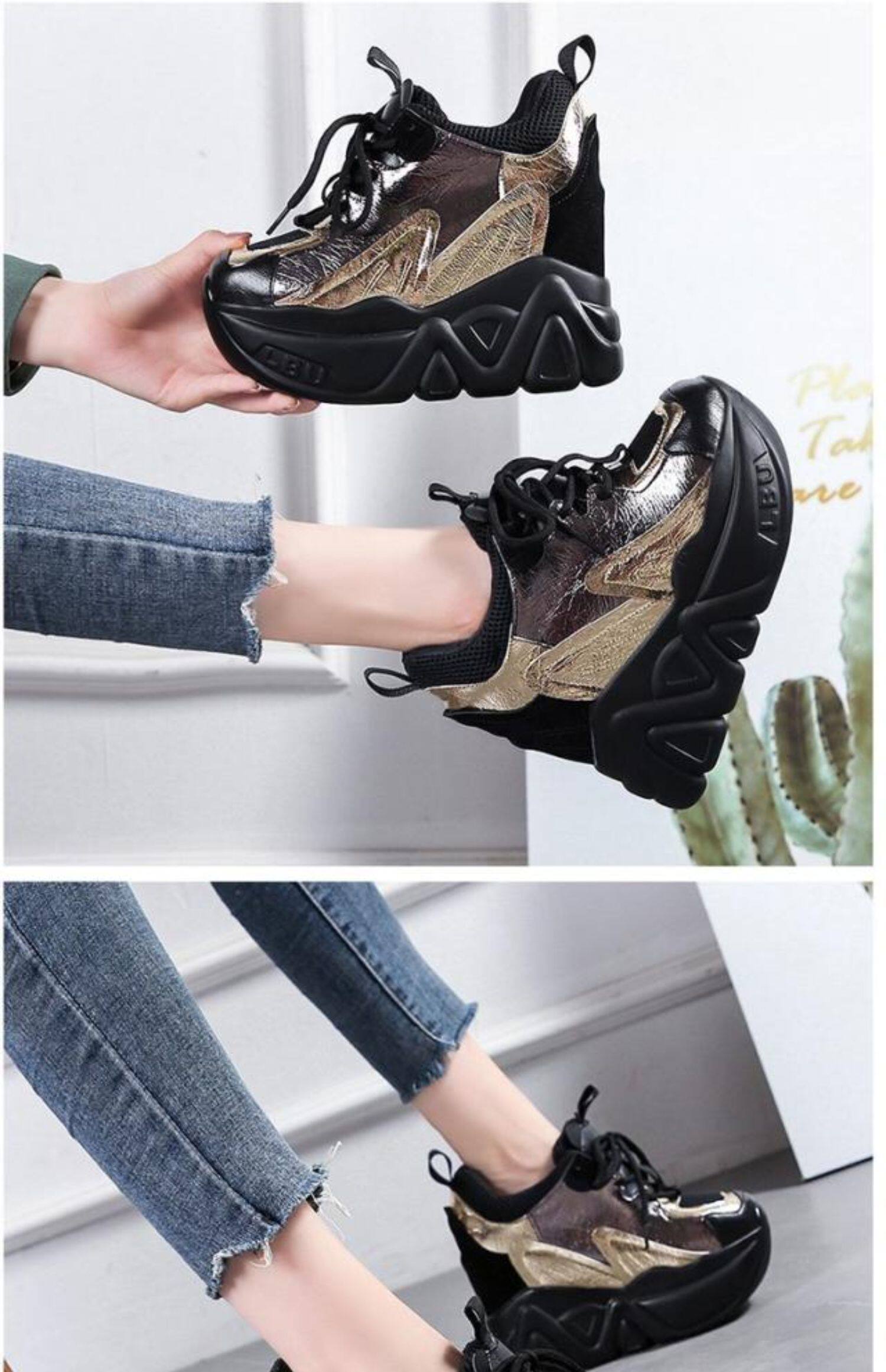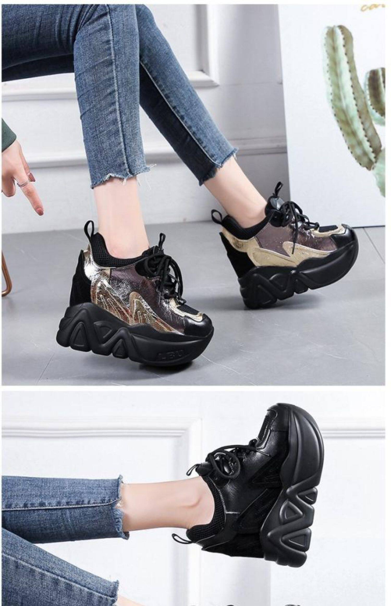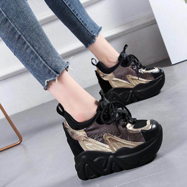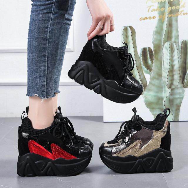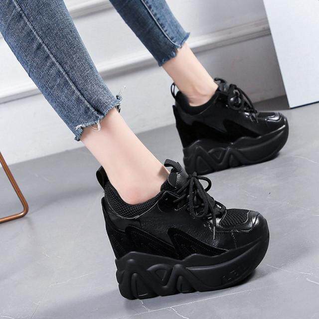 Женские туфли для папы, увеличивающие внутренний рост, новинка 2023 года, весенние одиночные туфли, женская обувь, повседневная обувь на универсальной платформе и толстой подошве, на высоком каблуке 12 см.