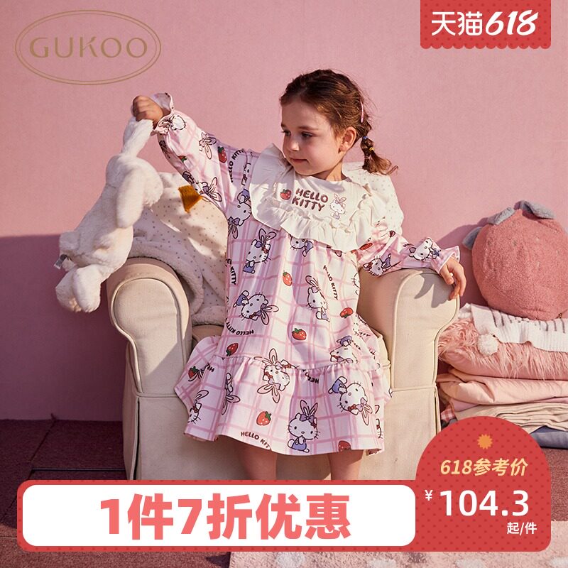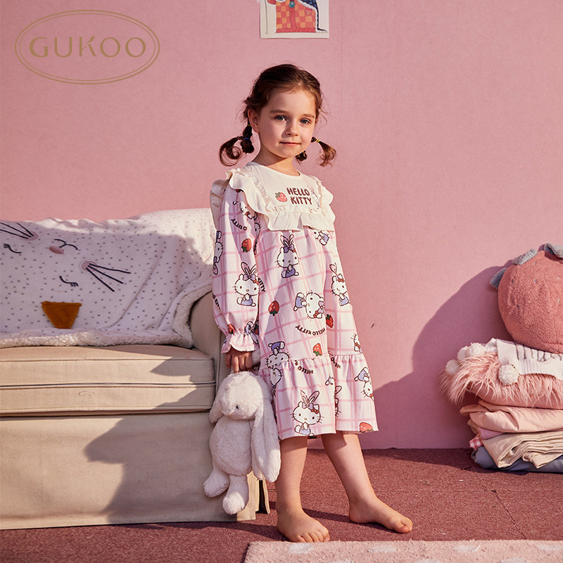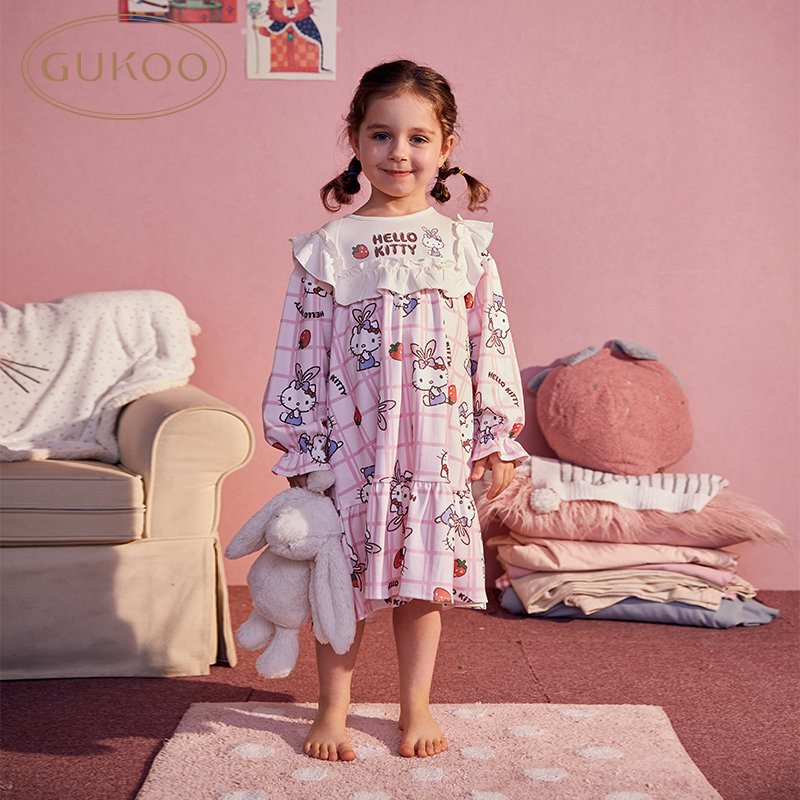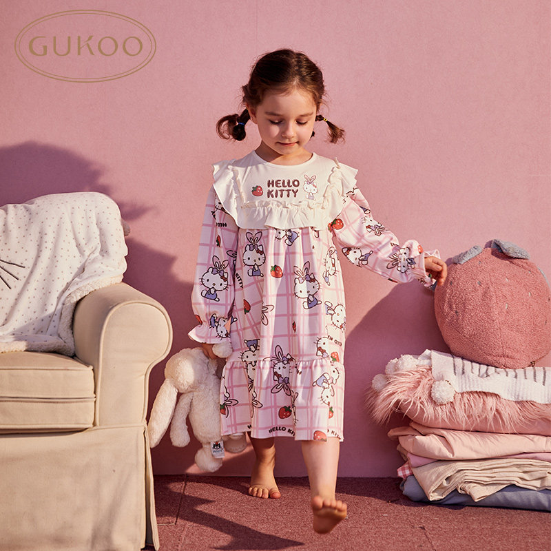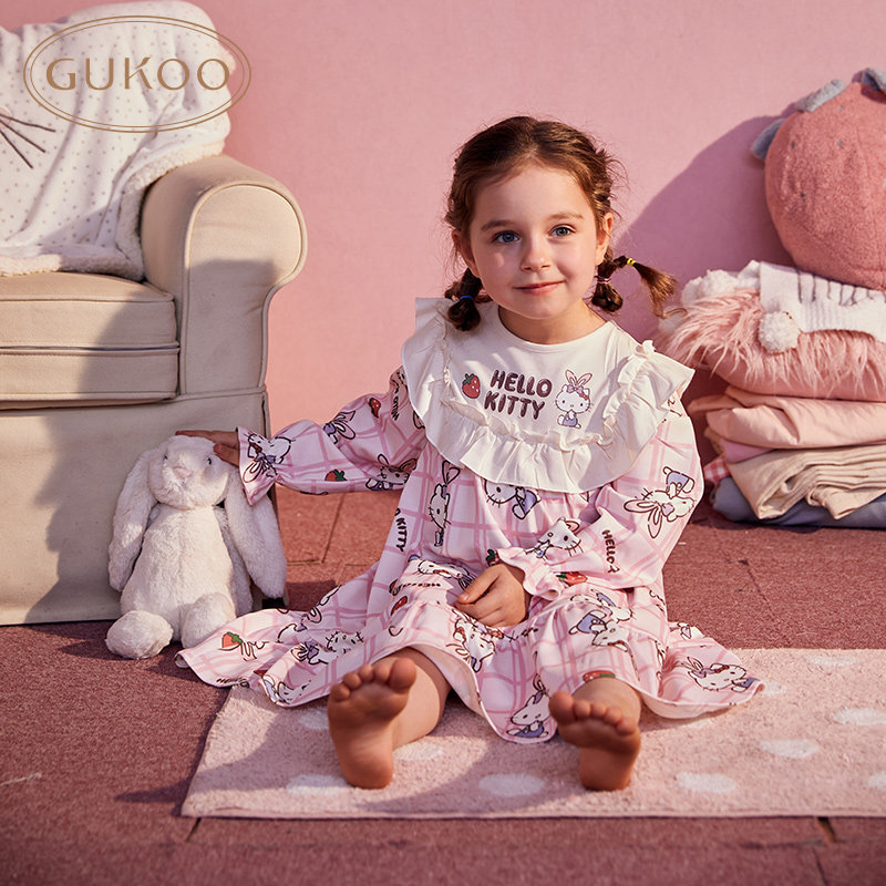 Gukoo/果壳 Hello Kitty, осенняя пижама, детский мультяшный комплект