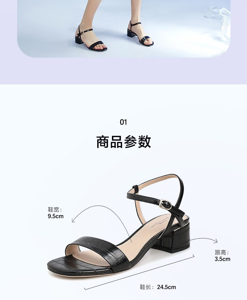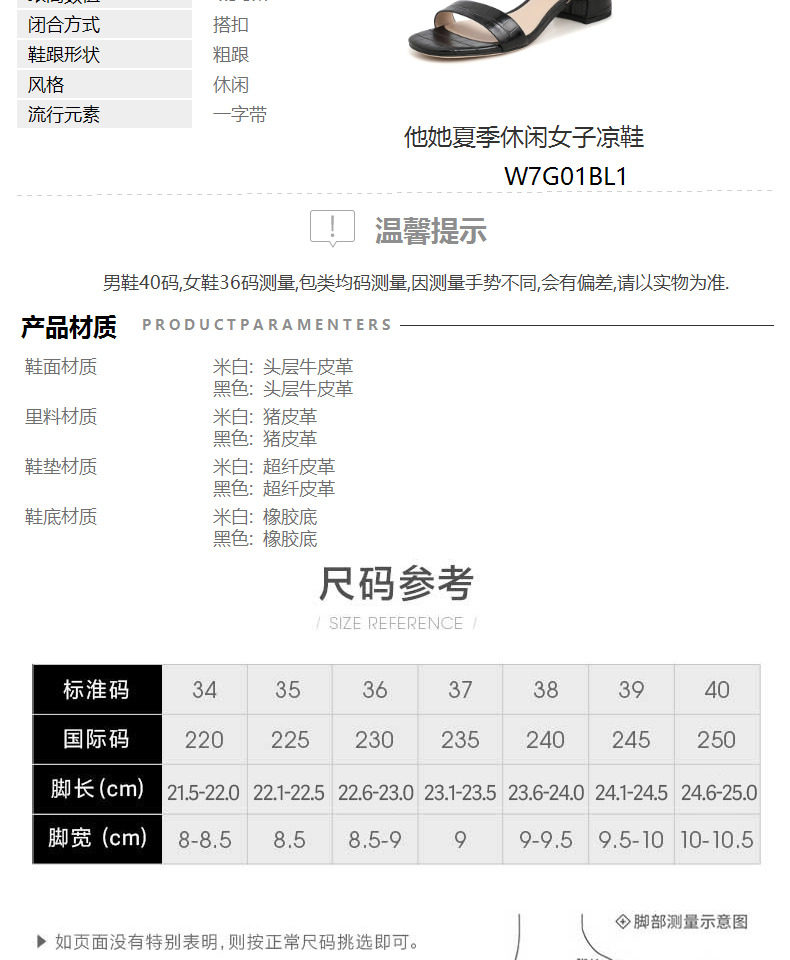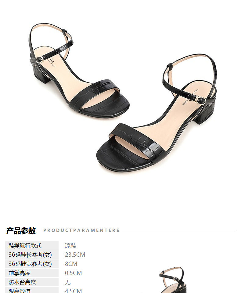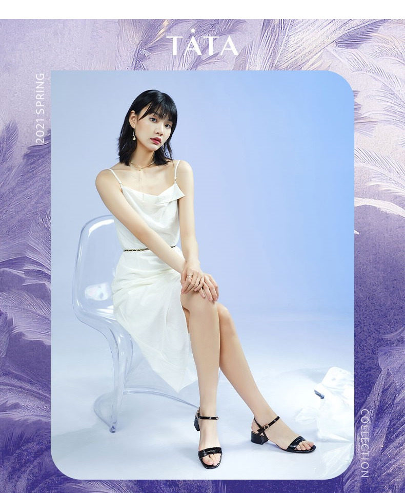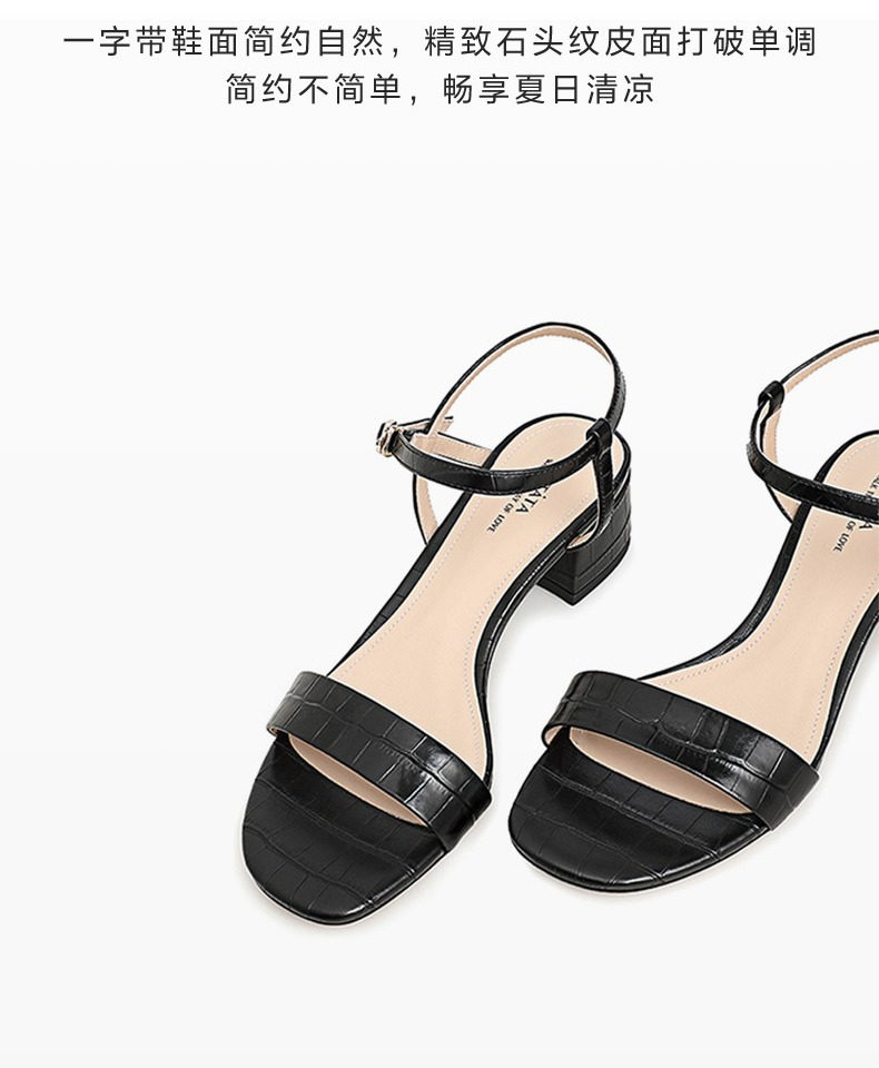 Тата он и она летние сандалии с одной полосой женской густой каблуки средней пятки квадратный корень черный стиль моды Новый W7G01BL1