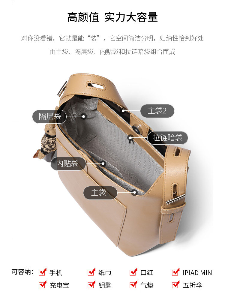 Универсальная вместительная и большая сумка через плечо, коричневая сумка на одно плечо, коллекция 2023