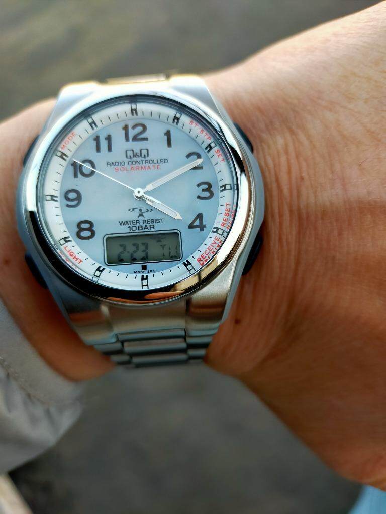 Япония Гражданин Западный Железный Сити Q & Q Light Power Radio Wave MD02-204/205 Solar Watch Watch Man