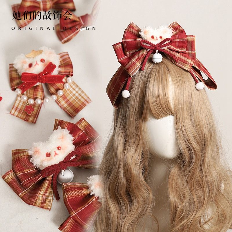 Красные шпильки для волос, заколка для волос с бантиком, оригинальный аксессуар для волос, популярно в интернете, коллекция 2022, стиль Лолита