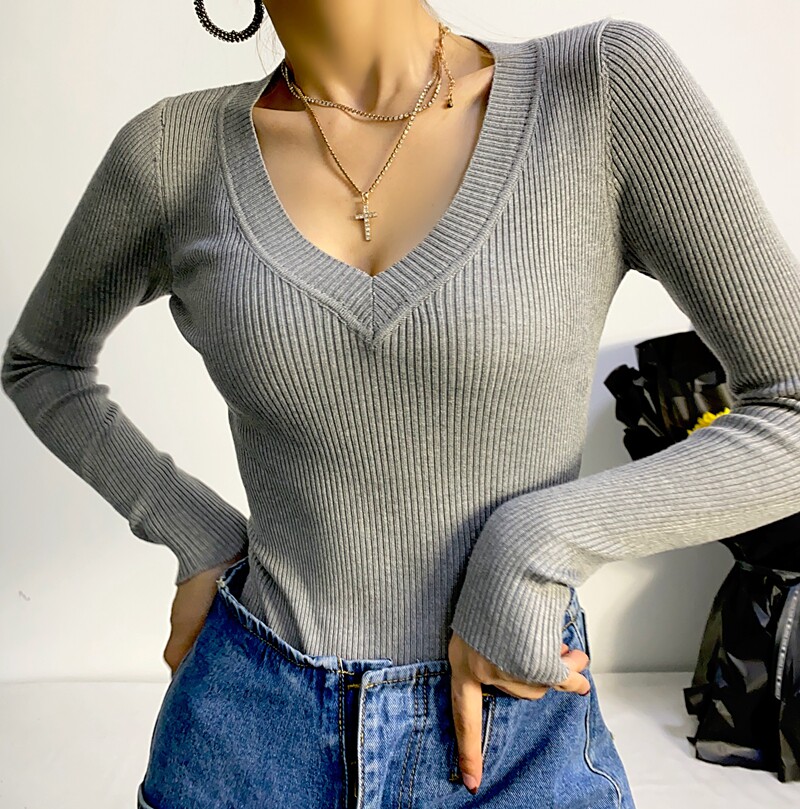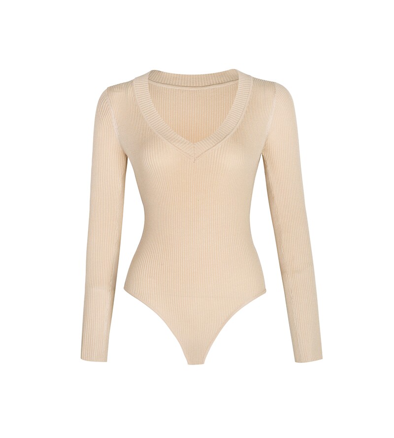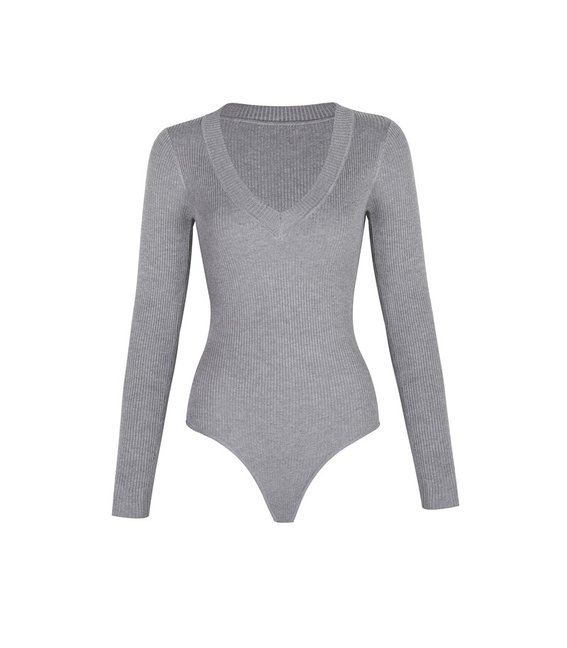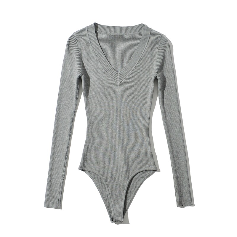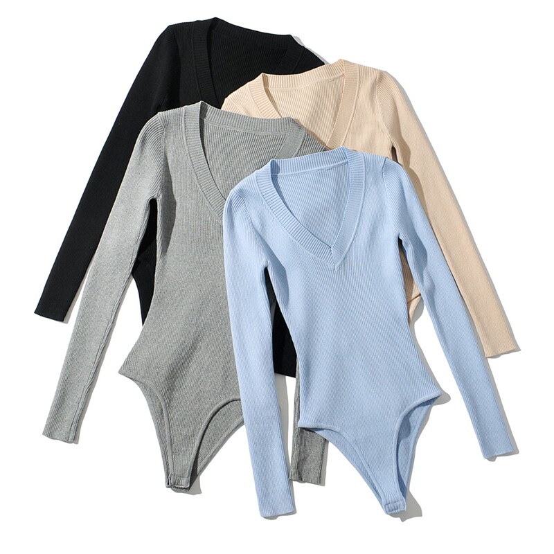 Демисезонное эластичное трикотажное боди, европейский стиль, 2020, в обтяжку, V-образный вырез