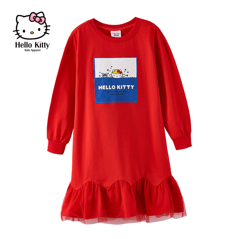 Hello Kitty, весеннее трикотажное трикотажное платье, детская юбка, коллекция 2021, в западном стиле, принт