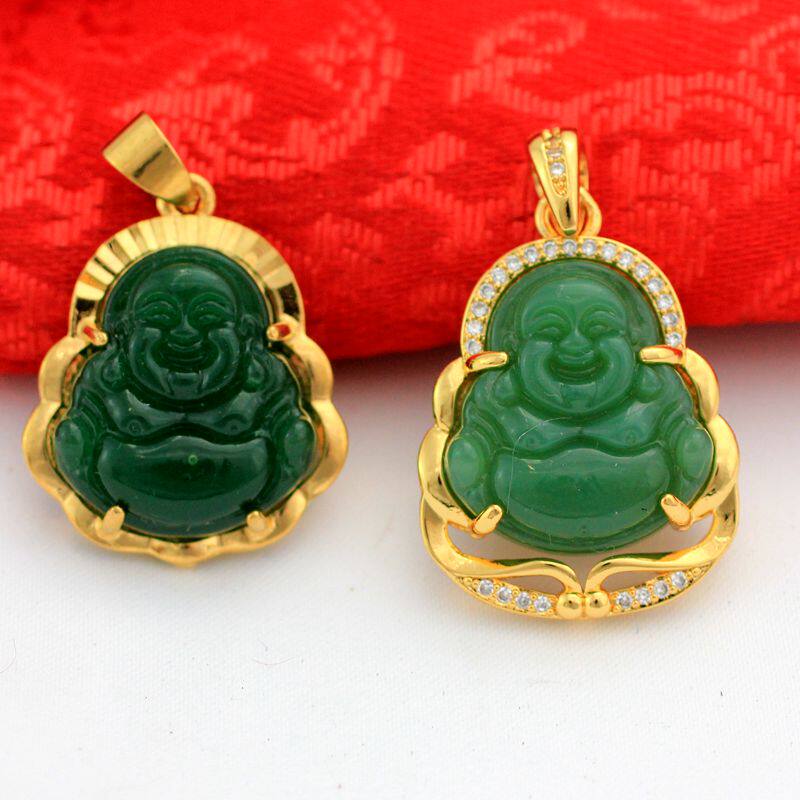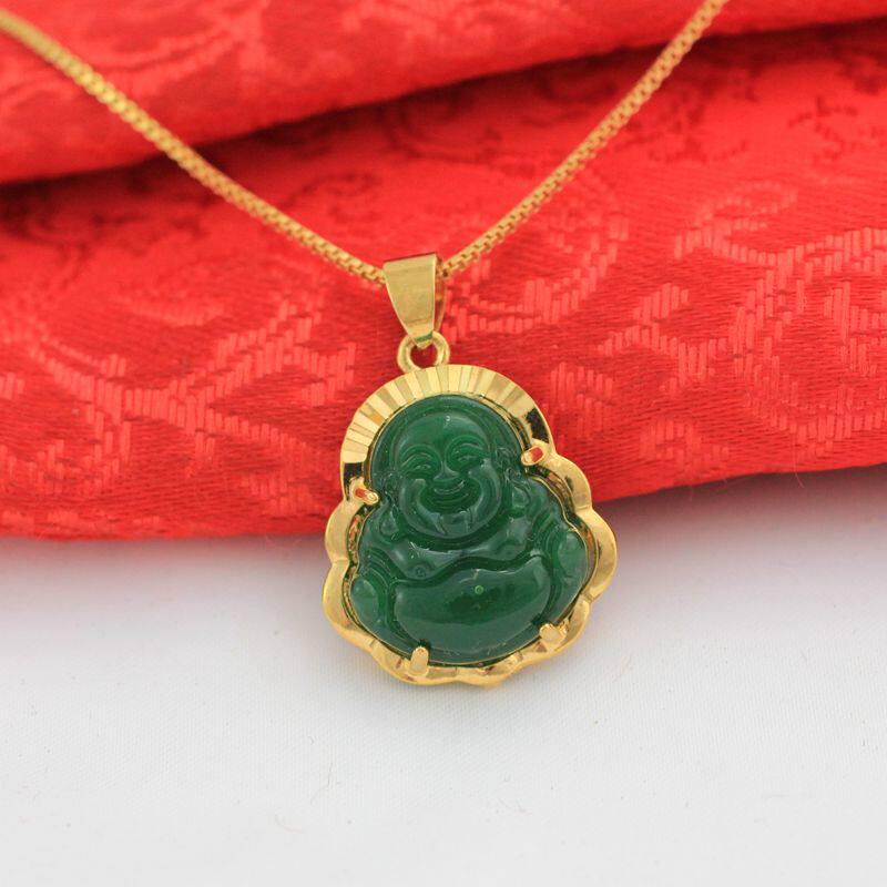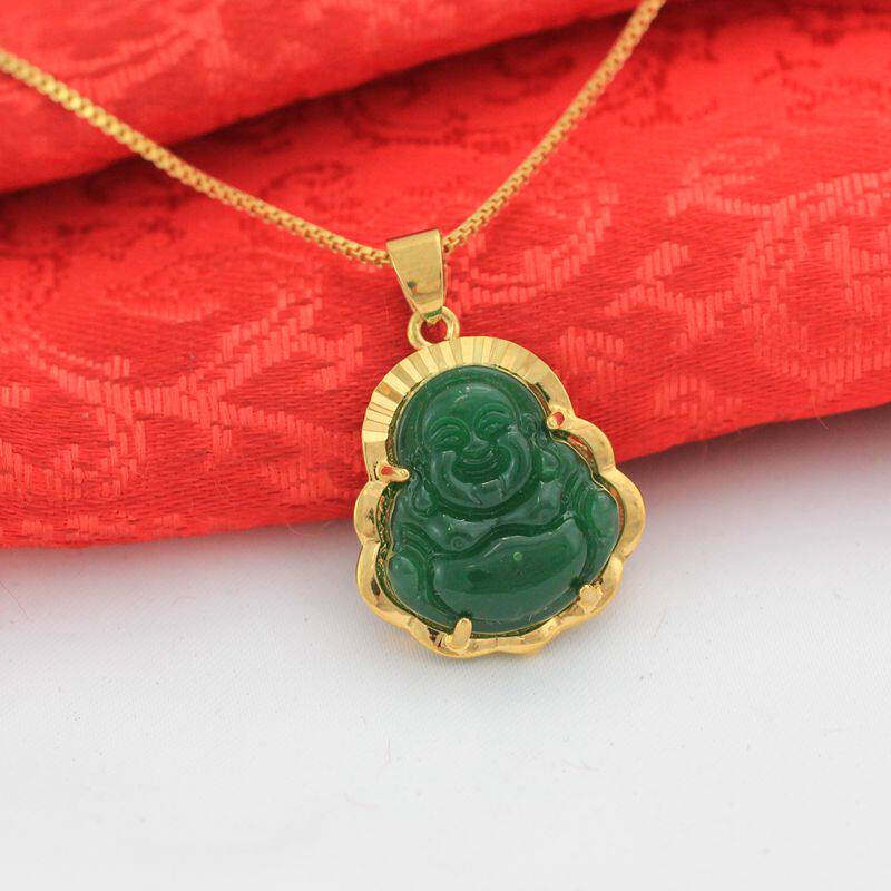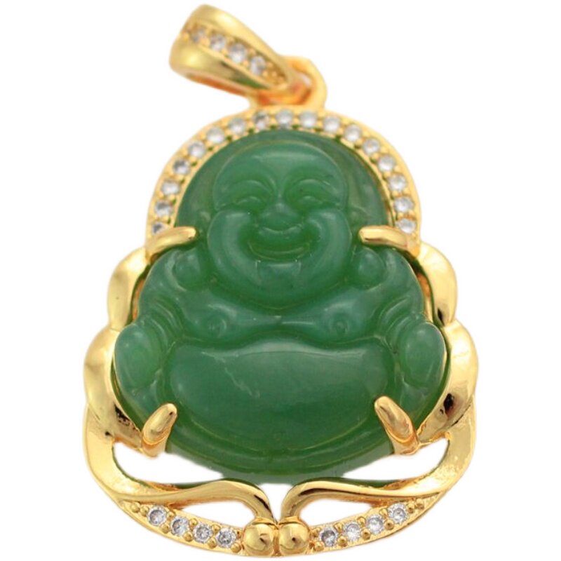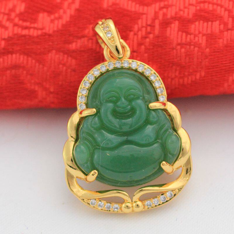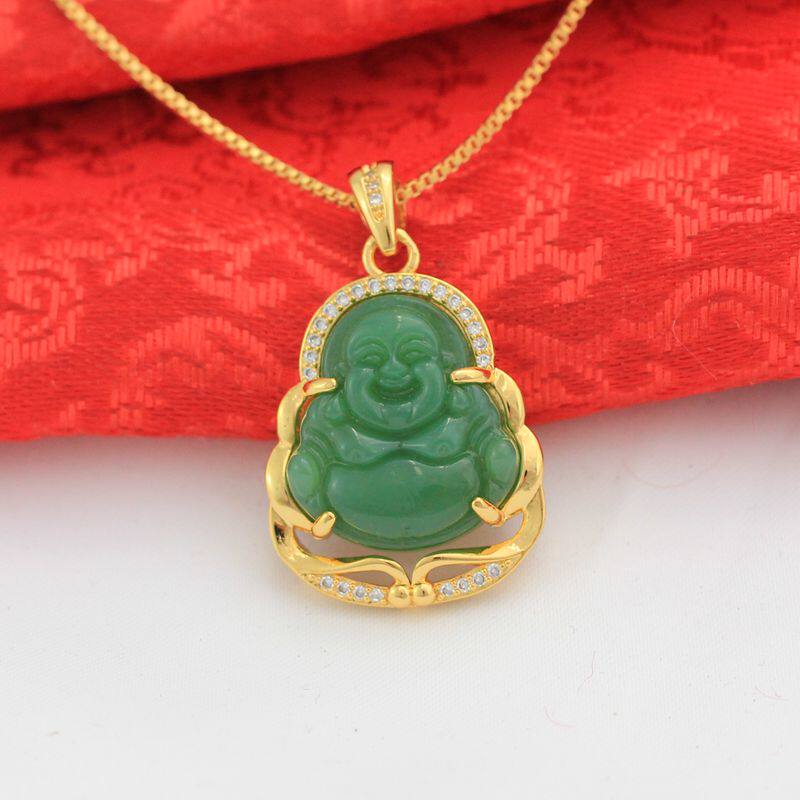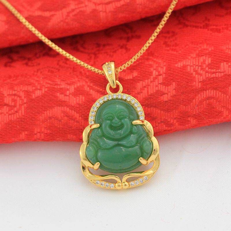 Будда, золотая изумрудная подвеска, ожерелье, микроинкрустация, с драгоценным камнем