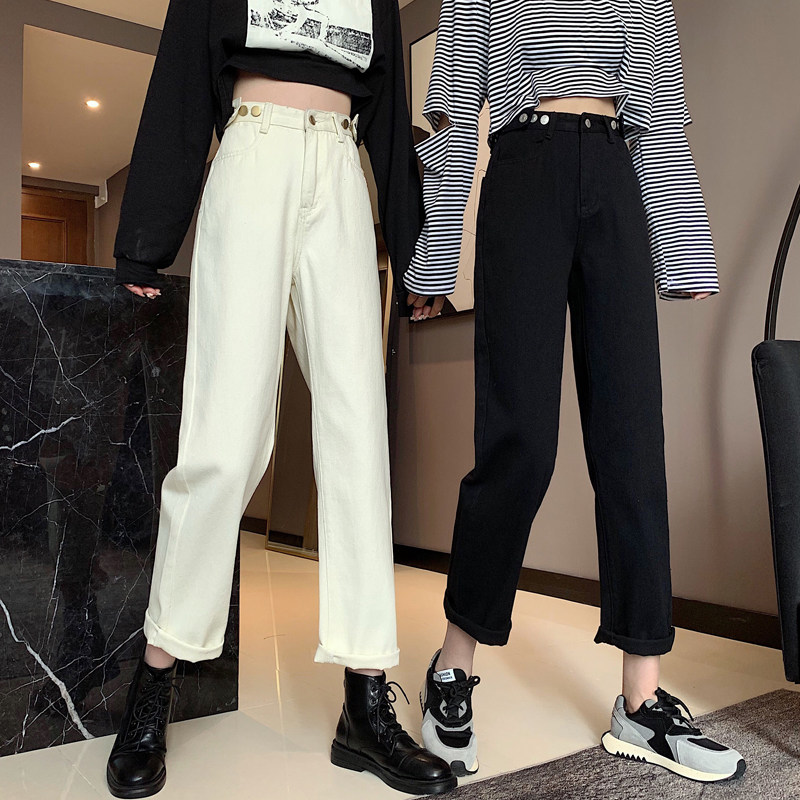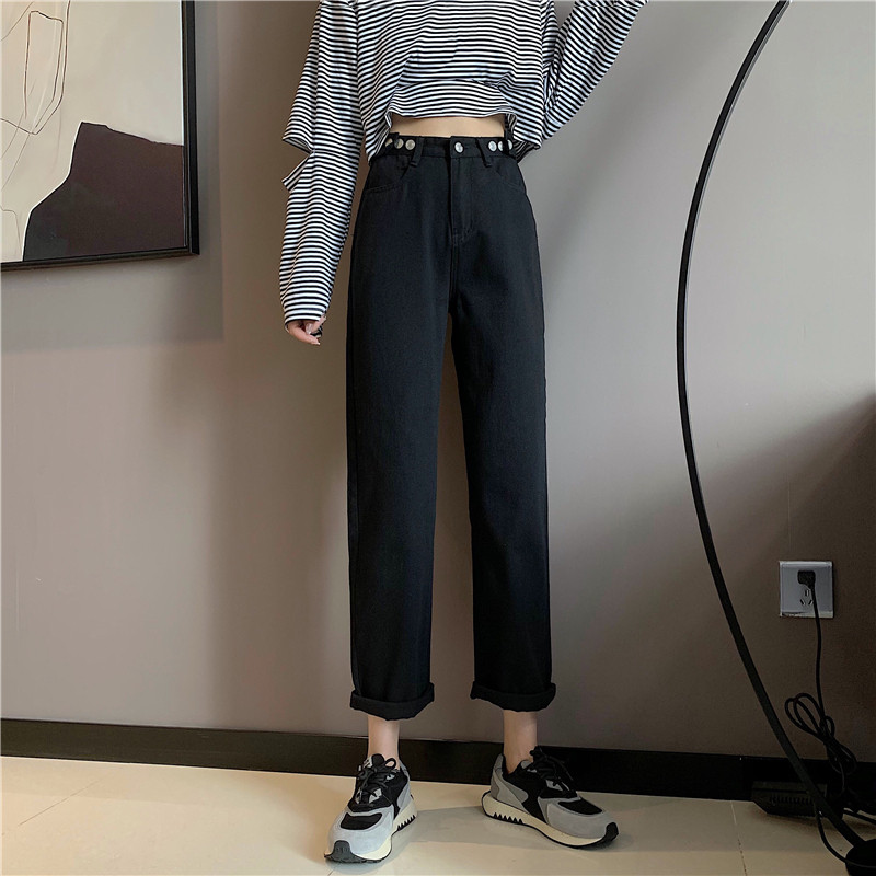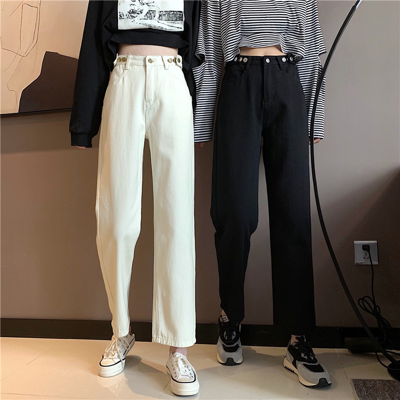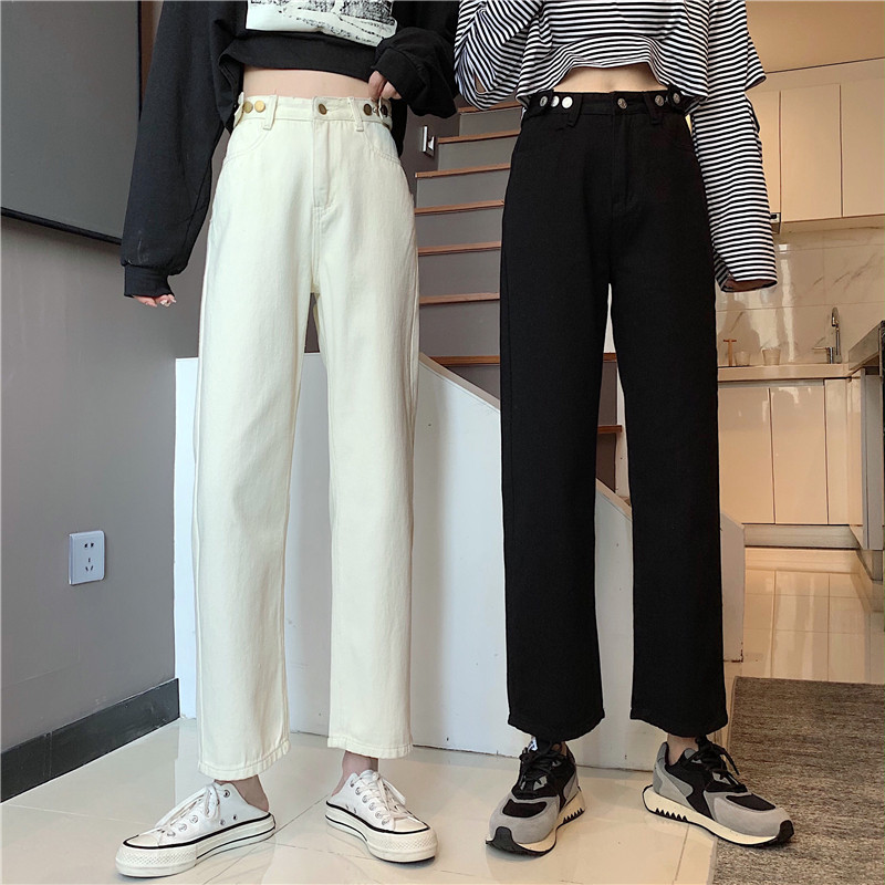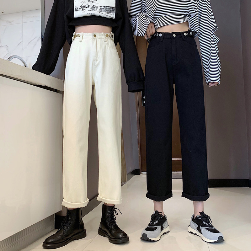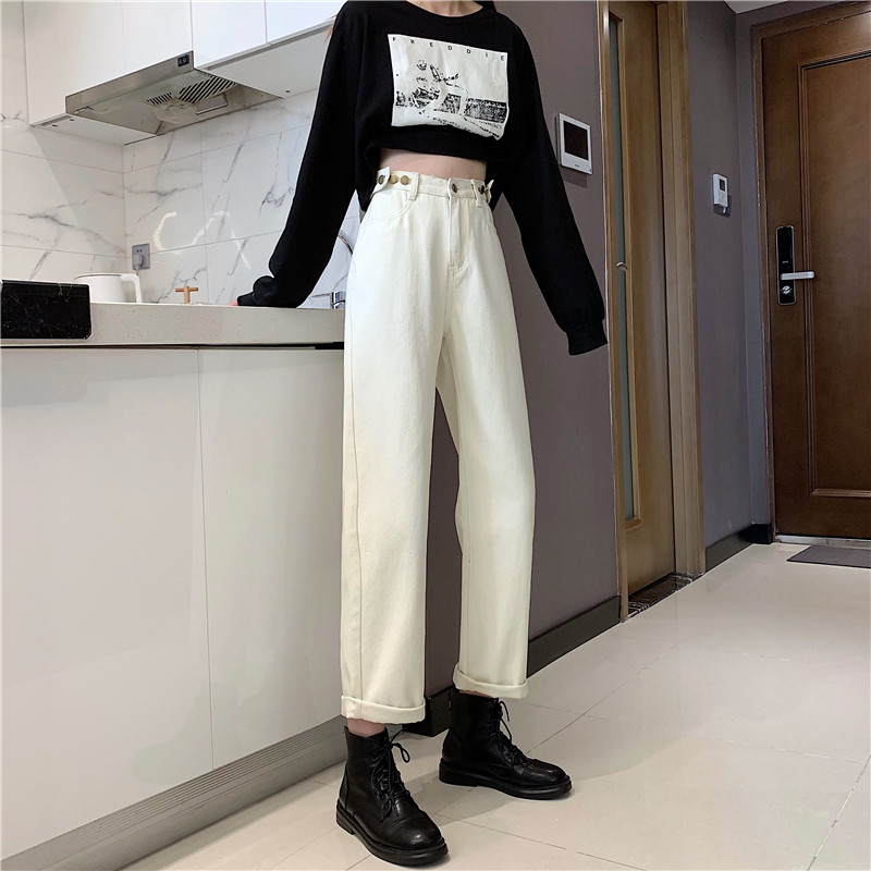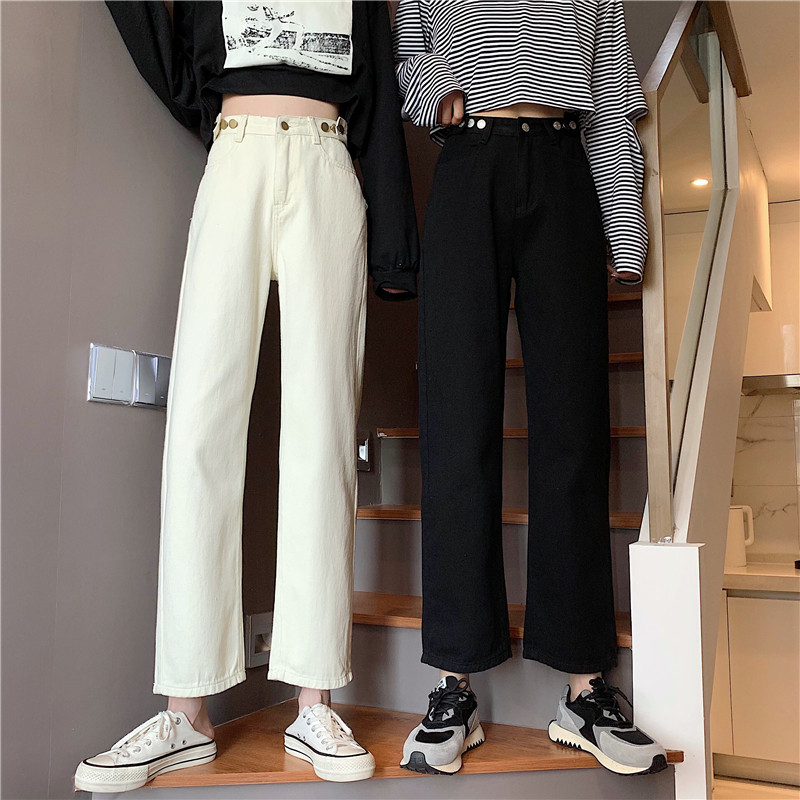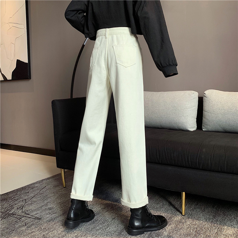Осенние джинсы, штаны, коллекция 2022, высокая талия, свободный прямой крой, оверсайз