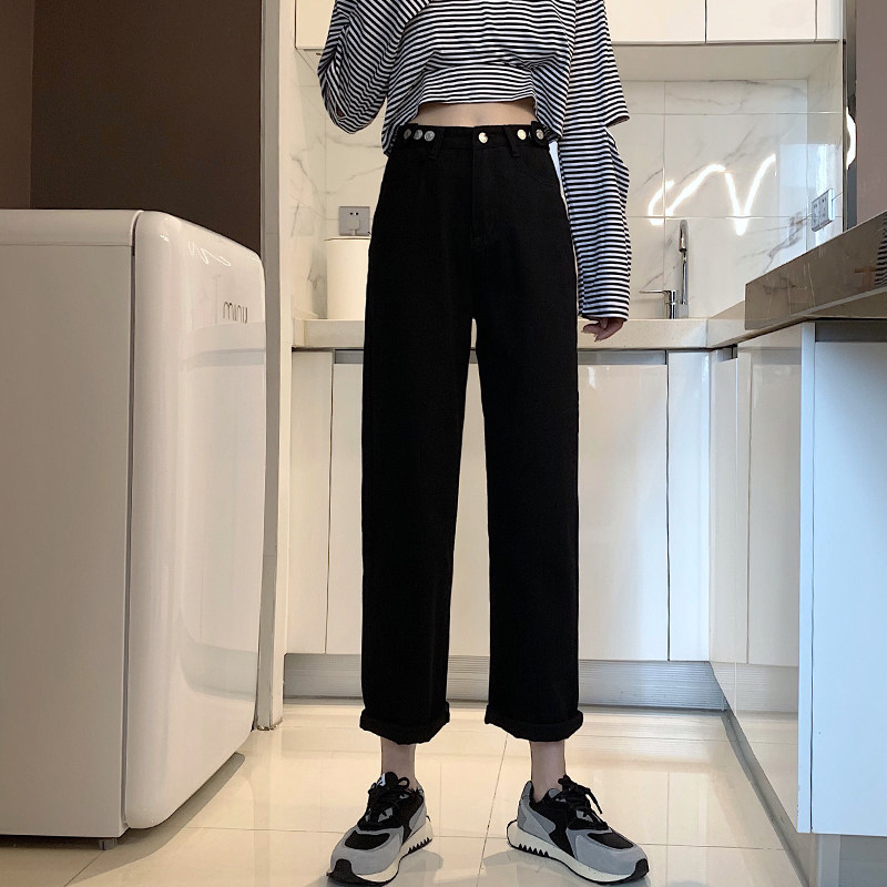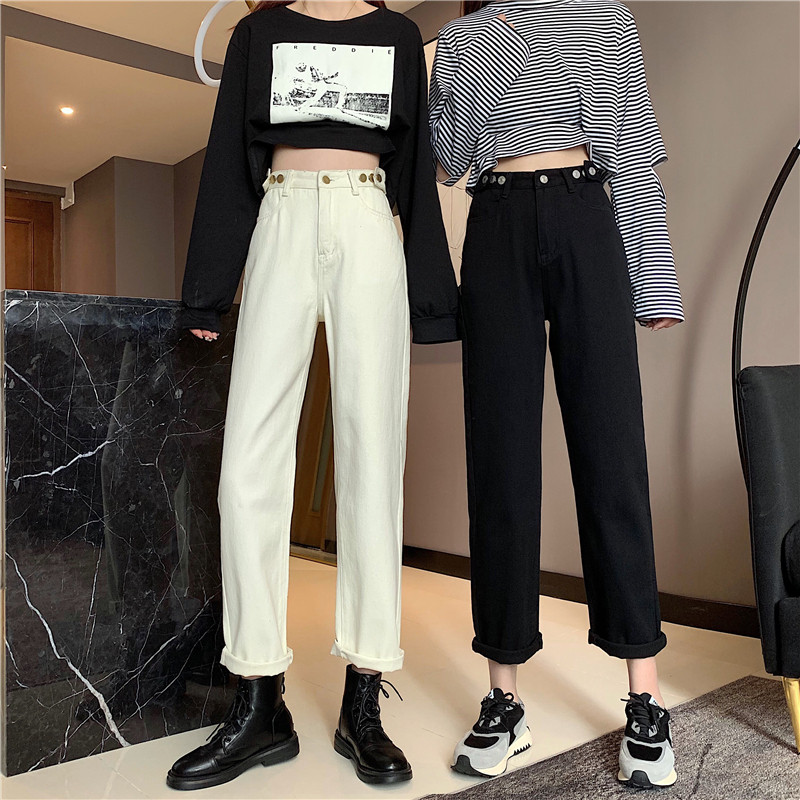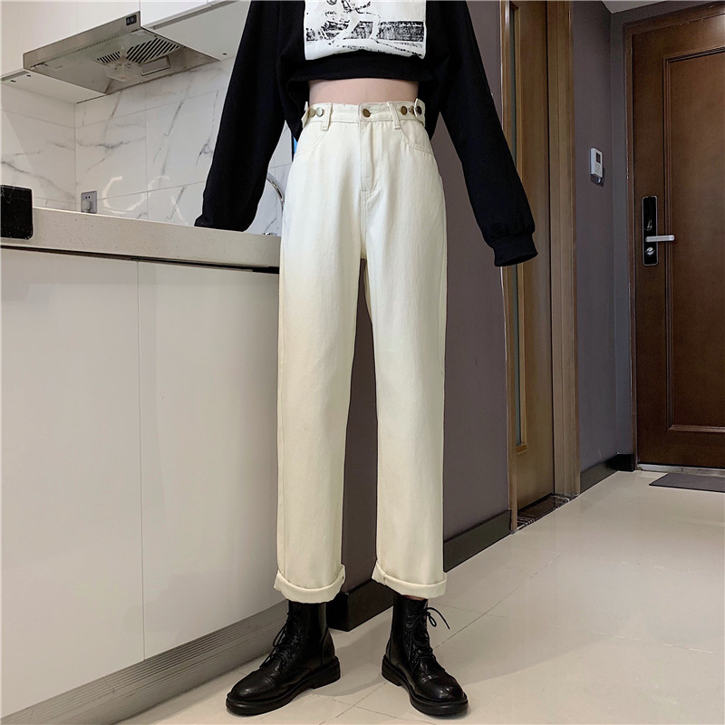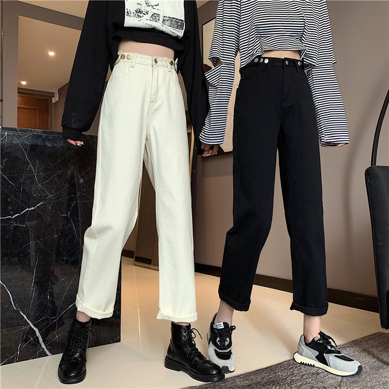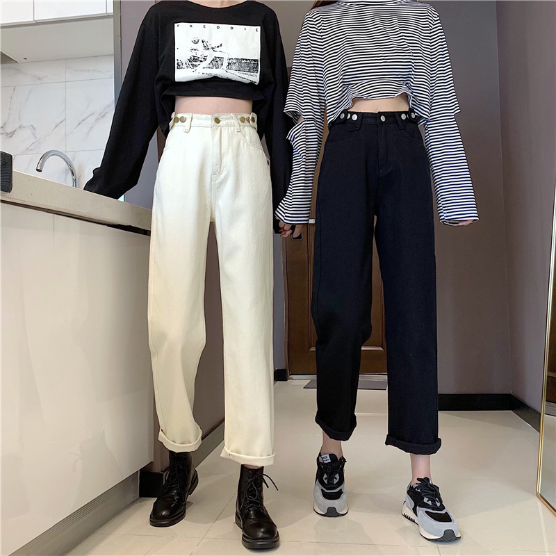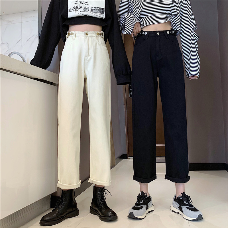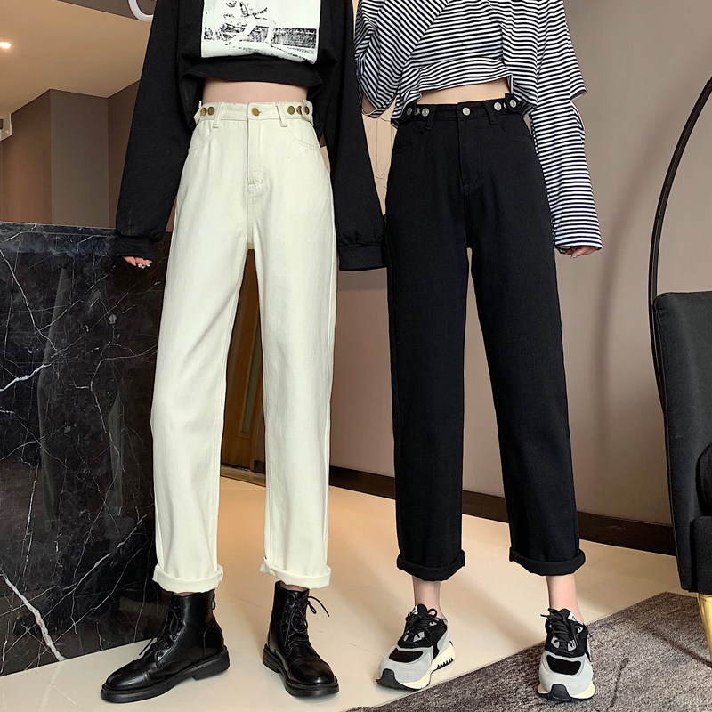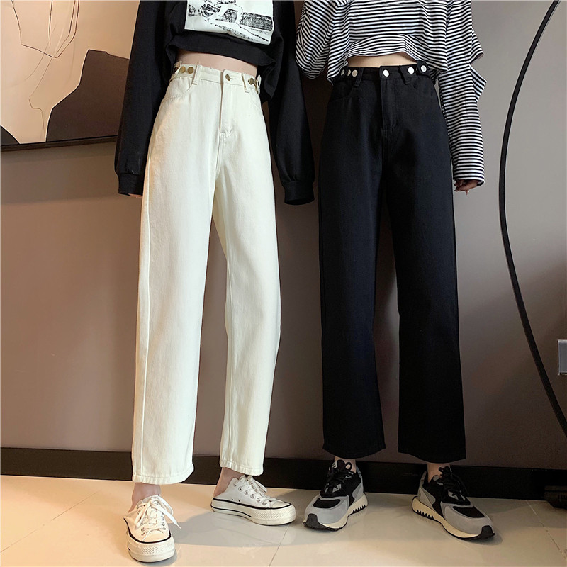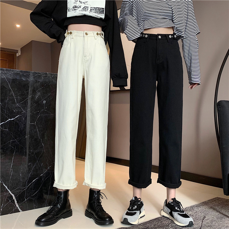 Осенние джинсы, штаны, коллекция 2022, высокая талия, свободный прямой крой, оверсайз