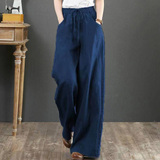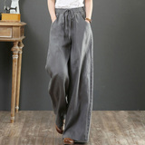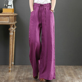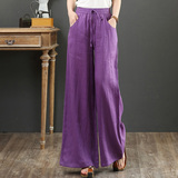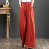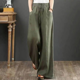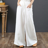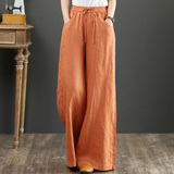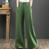 Летние тонкие штаны для отдыха, из хлопка и льна, оверсайз, эластичная талия, свободный прямой крой