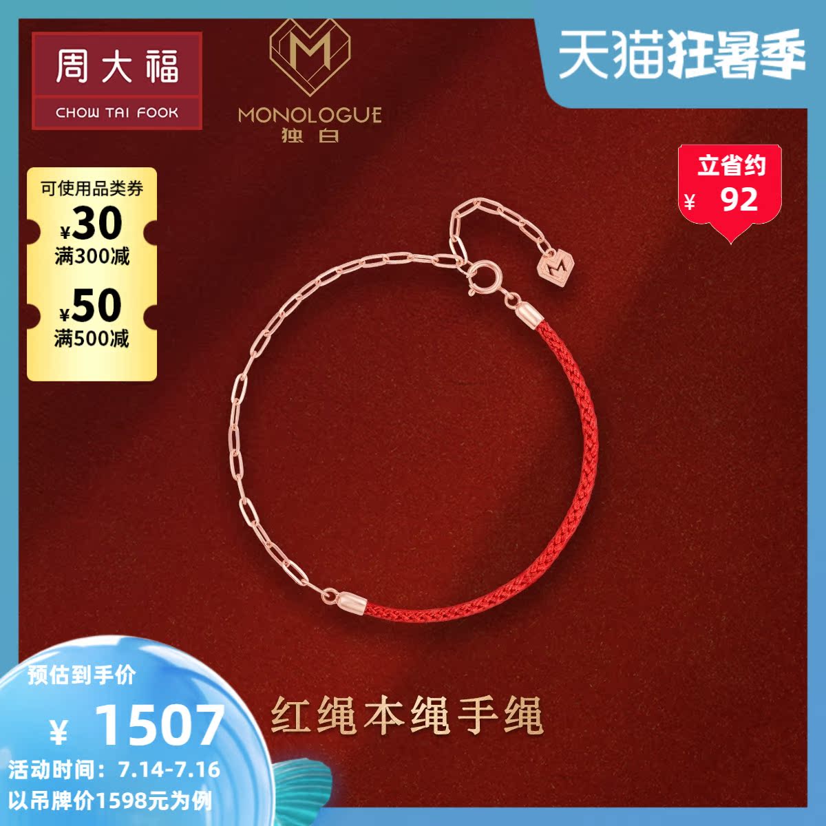 周大福 Монолог, управляемая цепью, красная веревка 18K золотой браслет ME1117