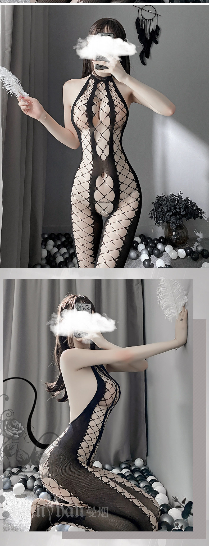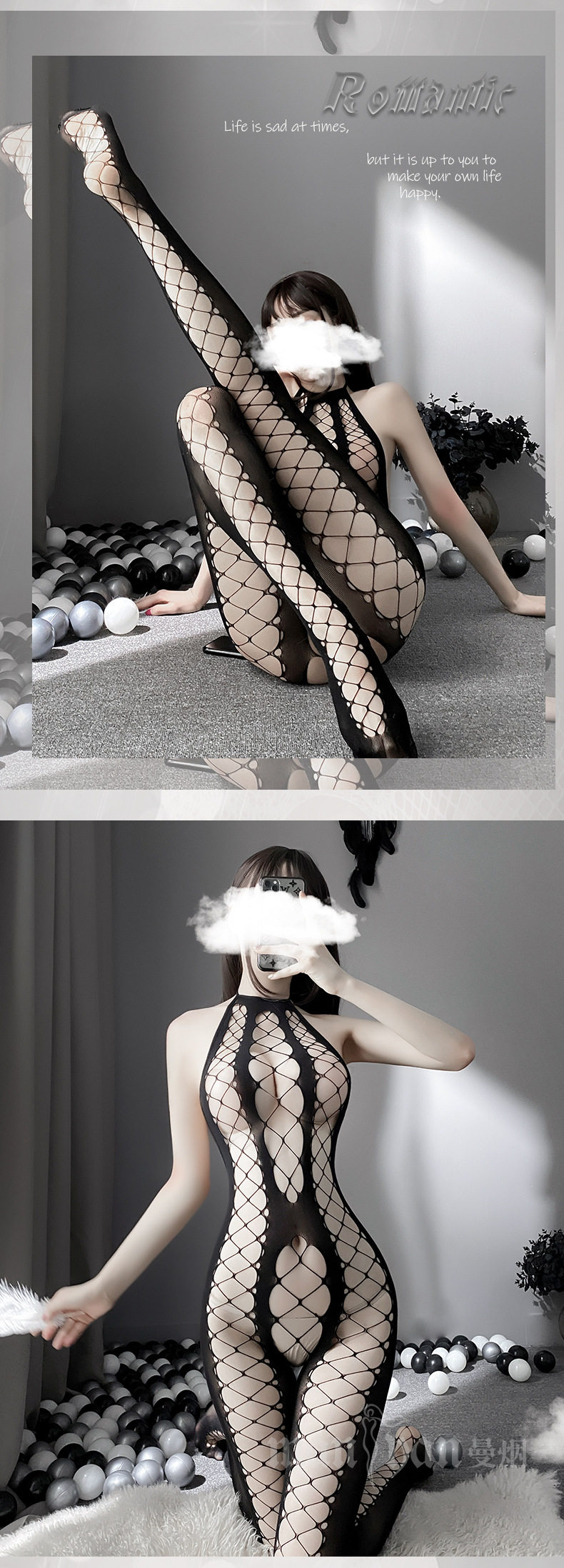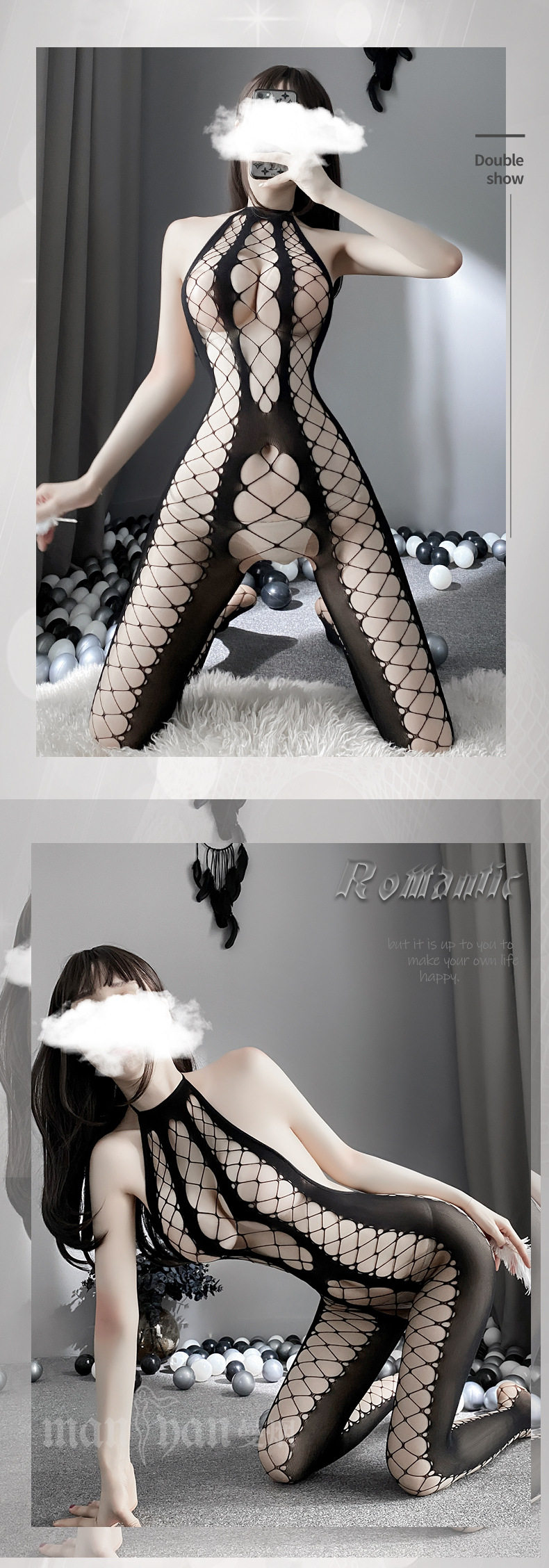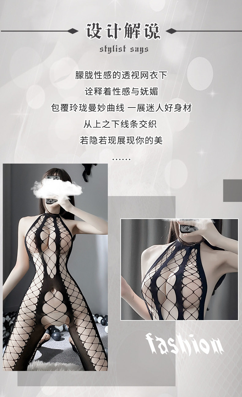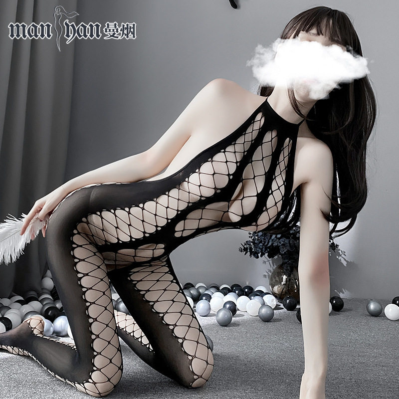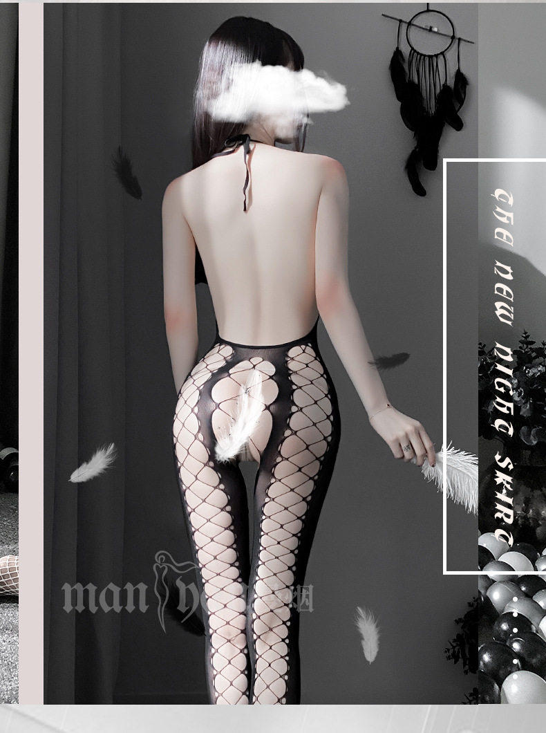 Сексуальное нижнее белье Сексуальная рыбацкая сеть подвесная шея полой сетевой одежда, соединенная с носками, сексуальными чулками, открытием, бесплатным искушением чулок
