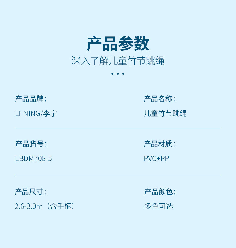 Li Ning, детская бамбуковая спортивная скакалка для школьников и студентов для детского сада, подходит для начинающих