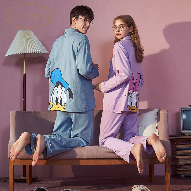 Дисней, хлопковая весенняя пижама для влюбленных, летний лонгслив, кардиган, комплект, оверсайз