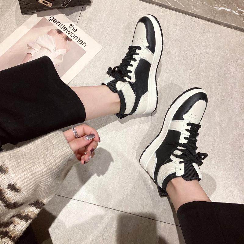 Модные брендовые высокие туфли для женщин 2024 года, осень и зима, новые женские туфли в корейском стиле, повседневная спортивная обувь из натуральной кожи, цветная строчка, шнуровка, толстая подошва