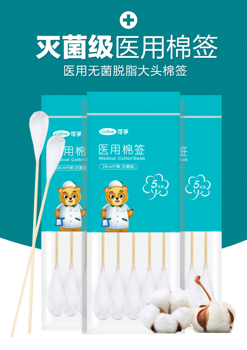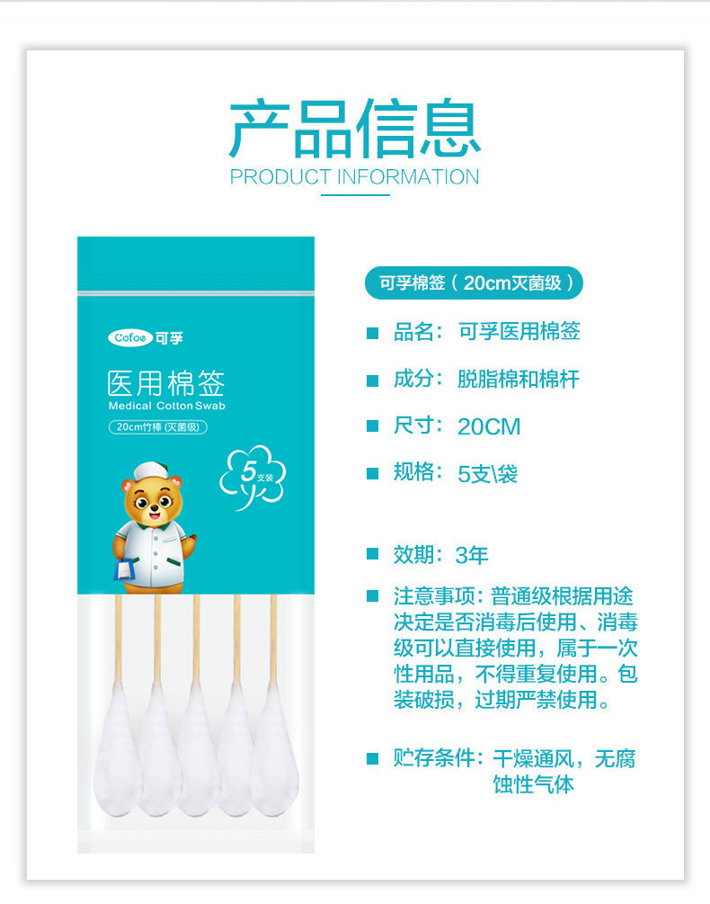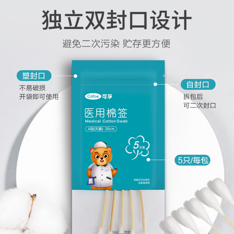 可孚 Одноразовые большие ватные палочки для молодой матери, 20см
