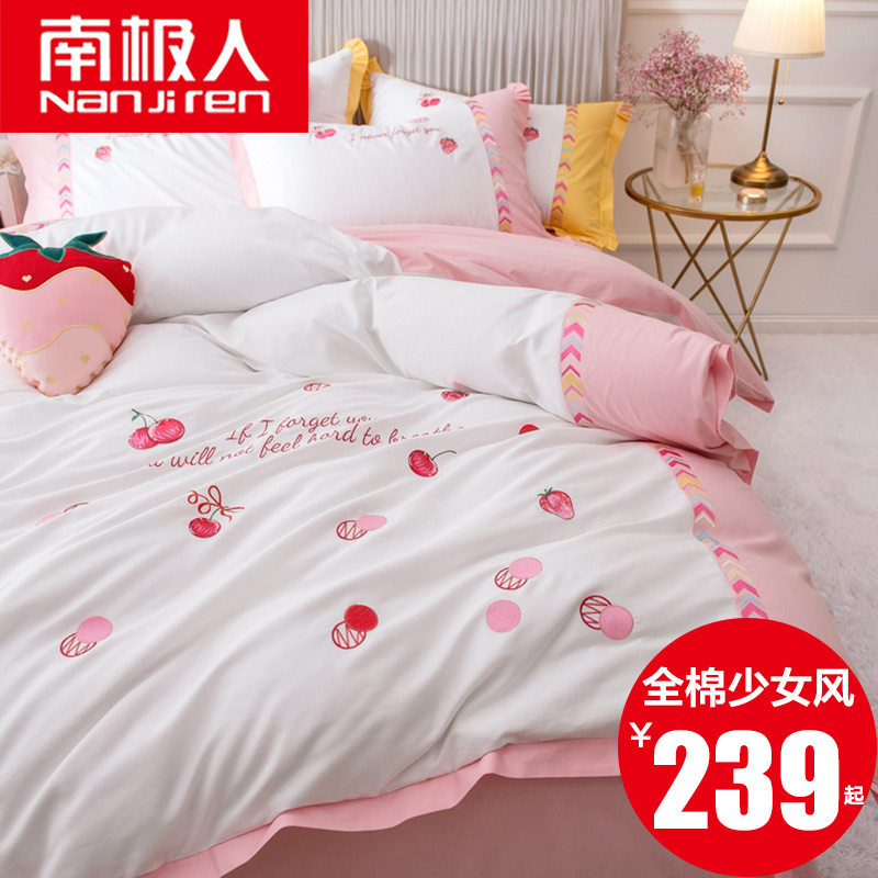 Хлопковый свежий комплект для принцессы, пододеяльник, покрывало, в корейском стиле, 4 предмета
