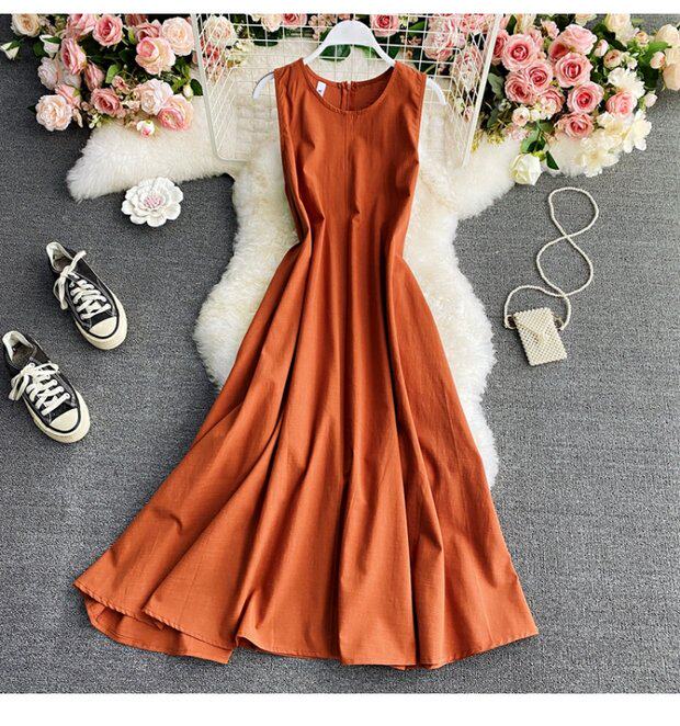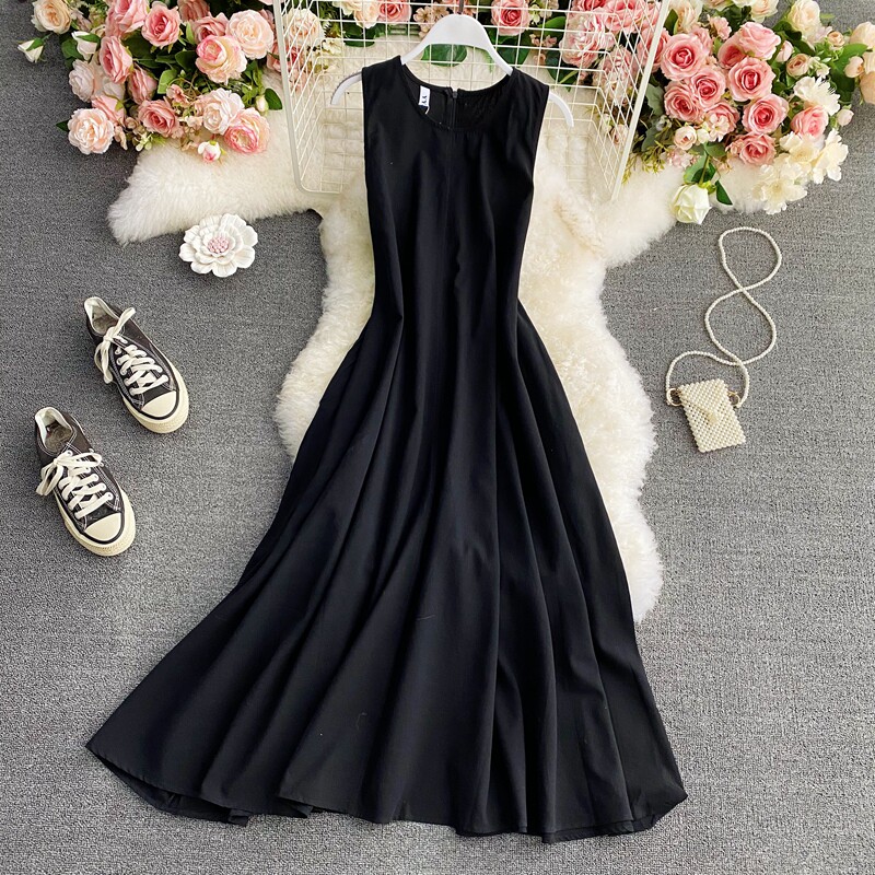 Летняя длинная юбка с круглым воротником, приталенный корсет без рукавов, платье