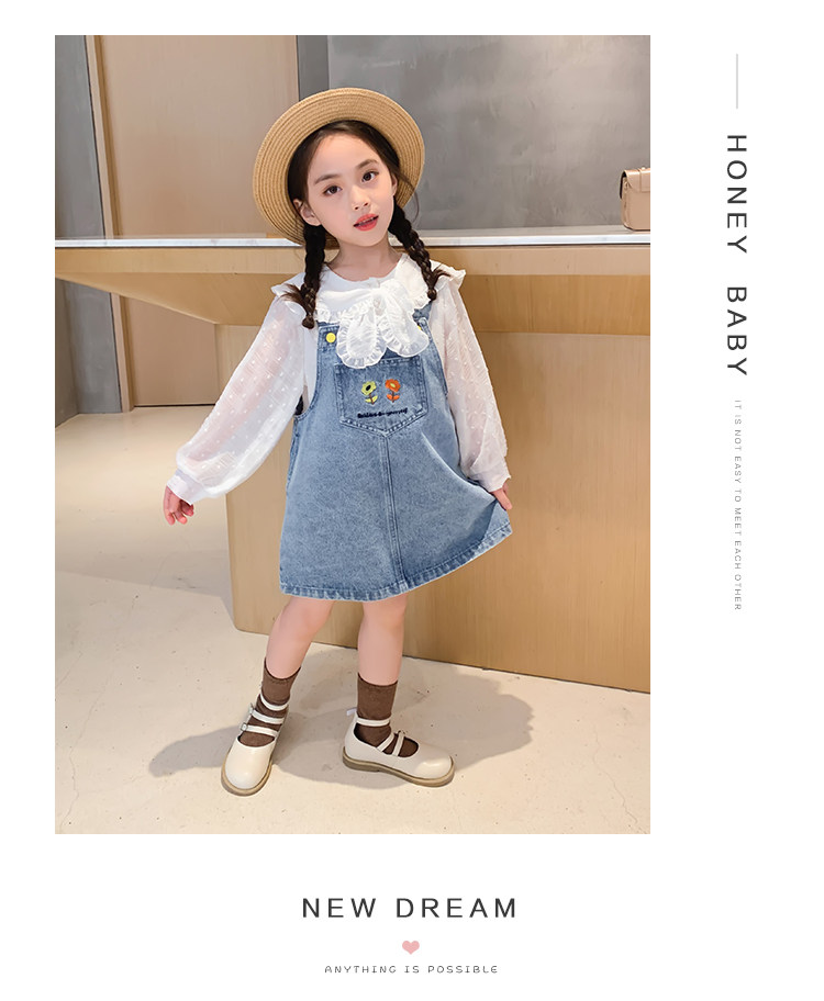左西 Джинсовый сарафан, юбка на девочку, платье, наряд маленькой принцессы, детская одежда, подходит для подростков, коллекция 2021
