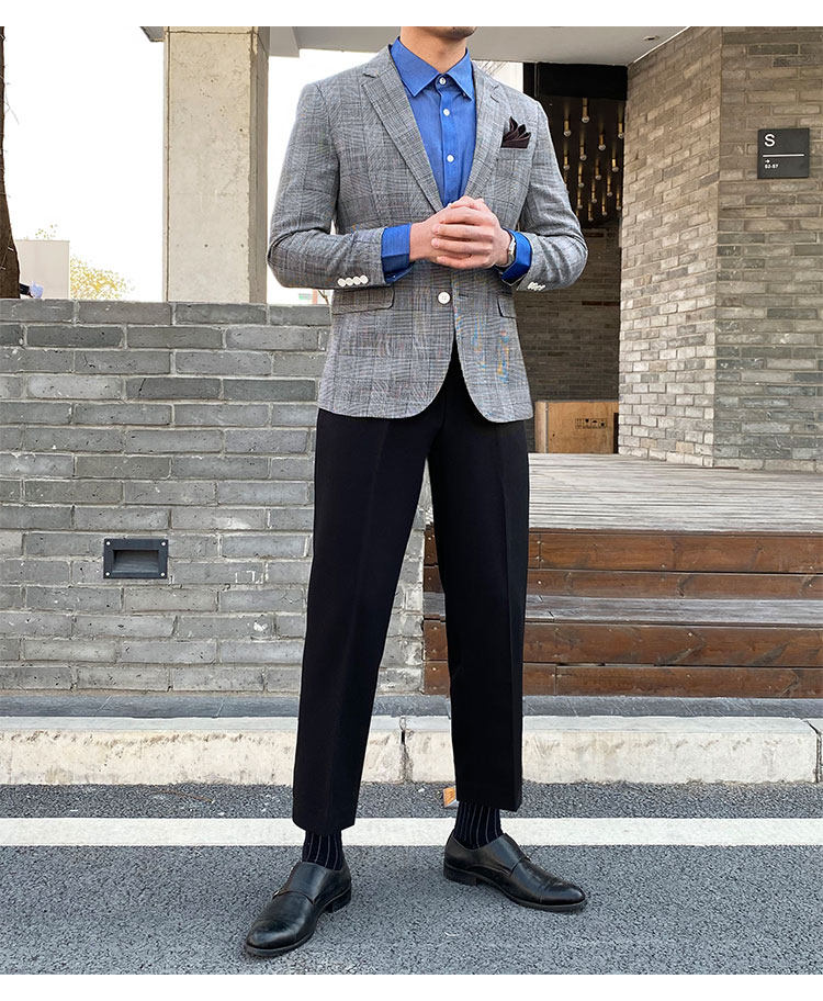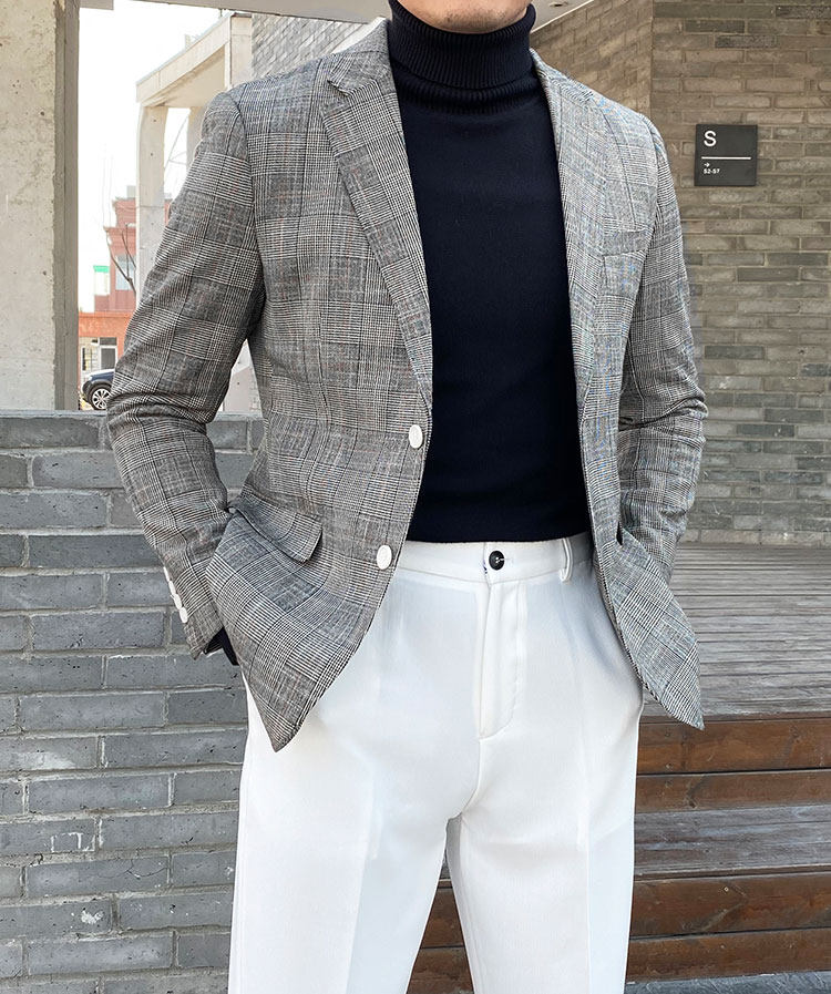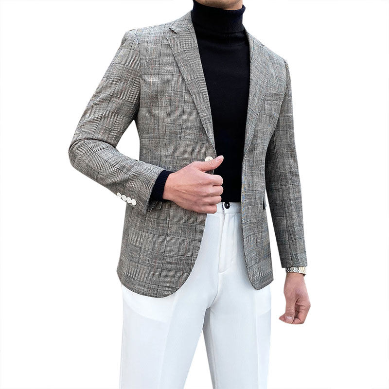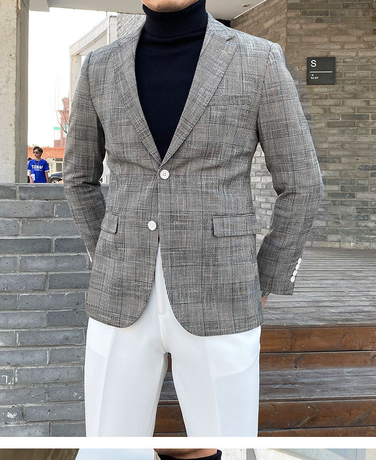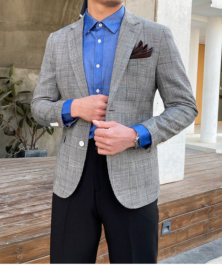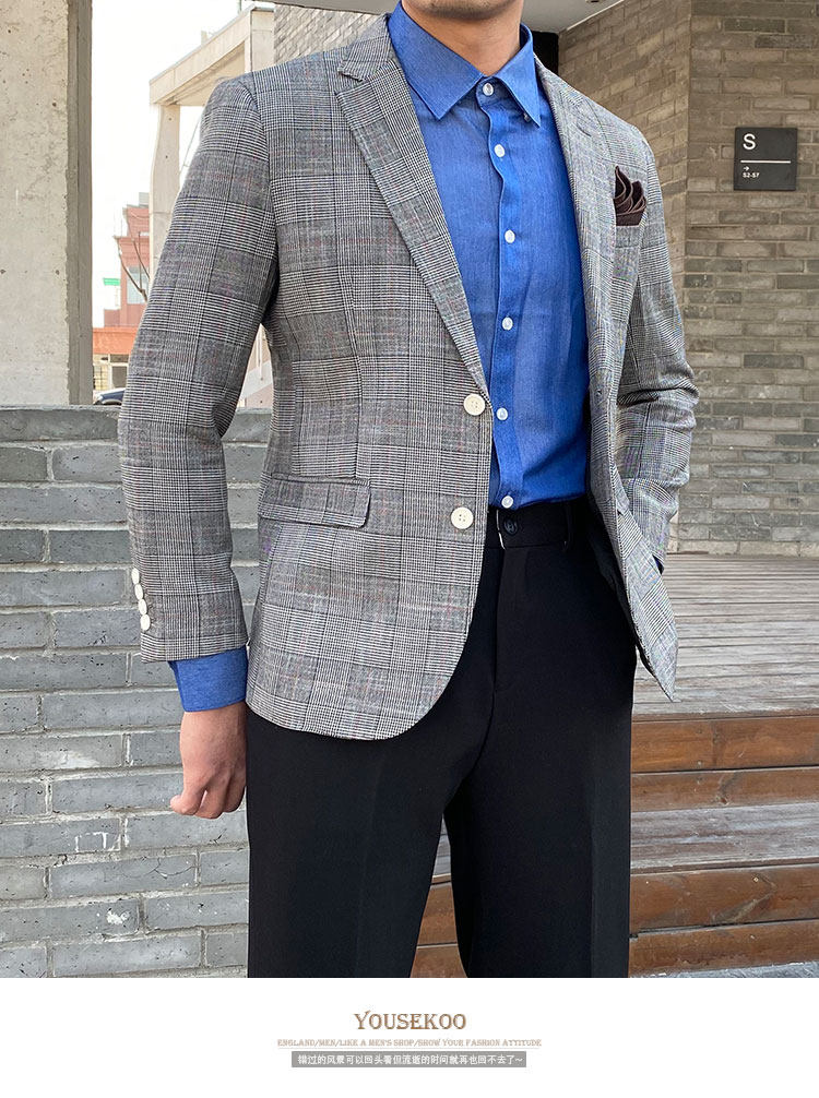 Клетчатый костюм мужской британский деловой повседневный формальный верхний легкий роскошный корейский стиль модный тонкий цельный маленький костюм мужская куртка