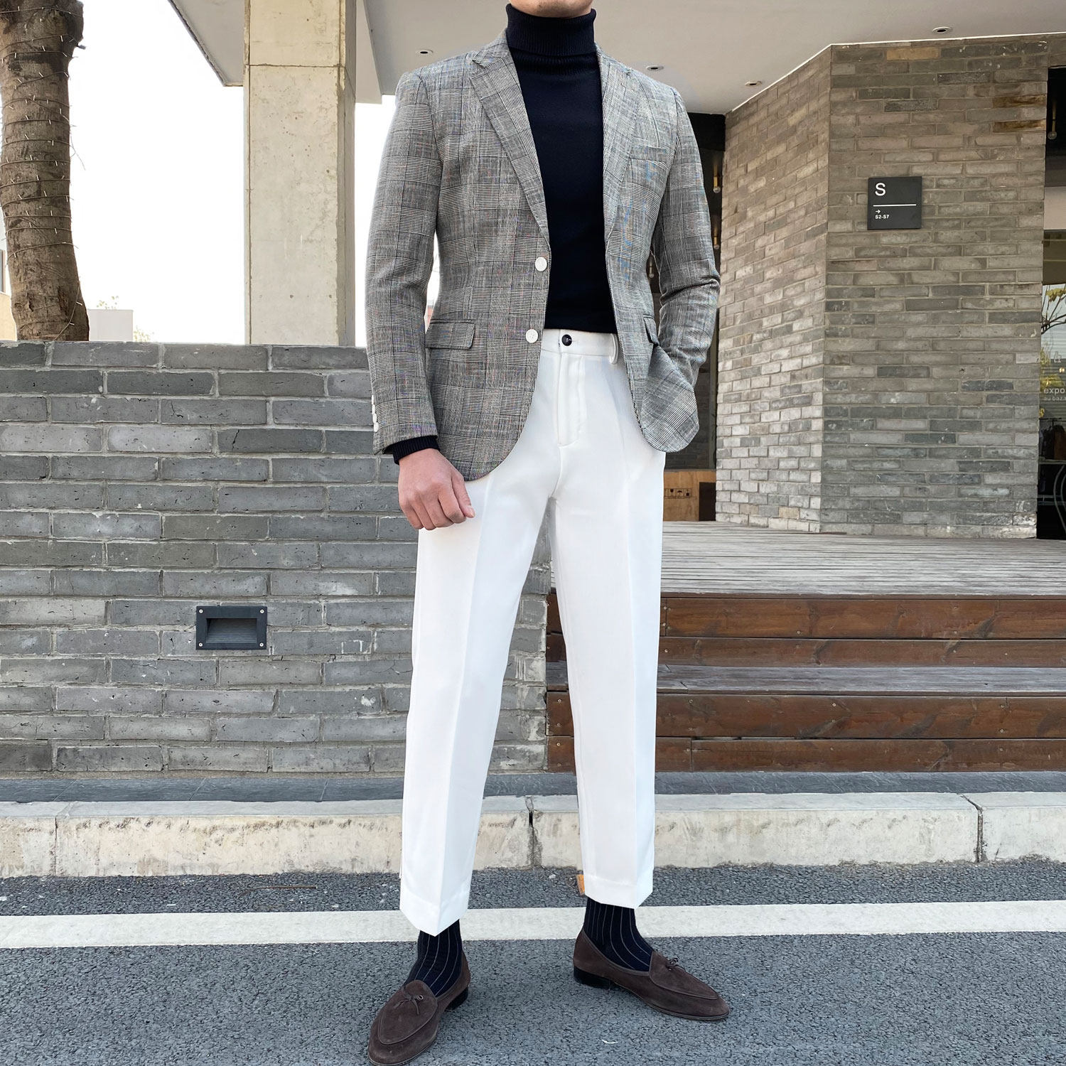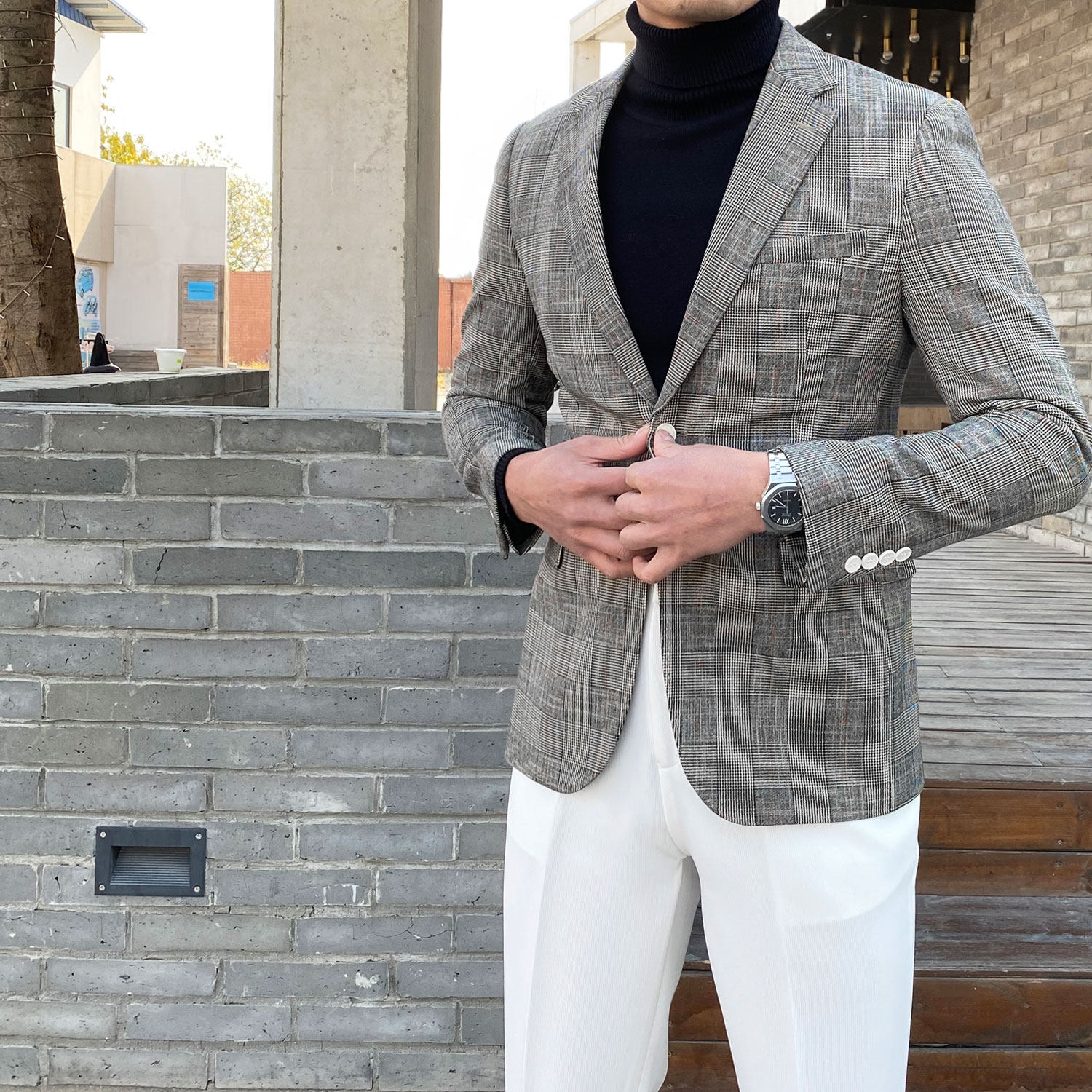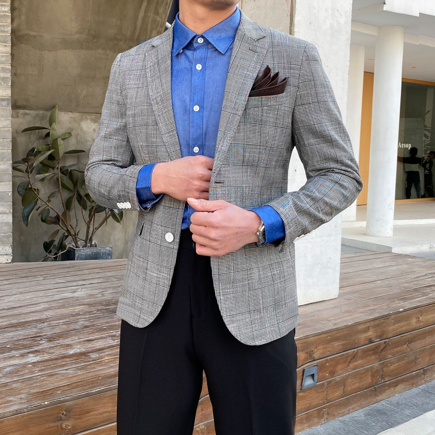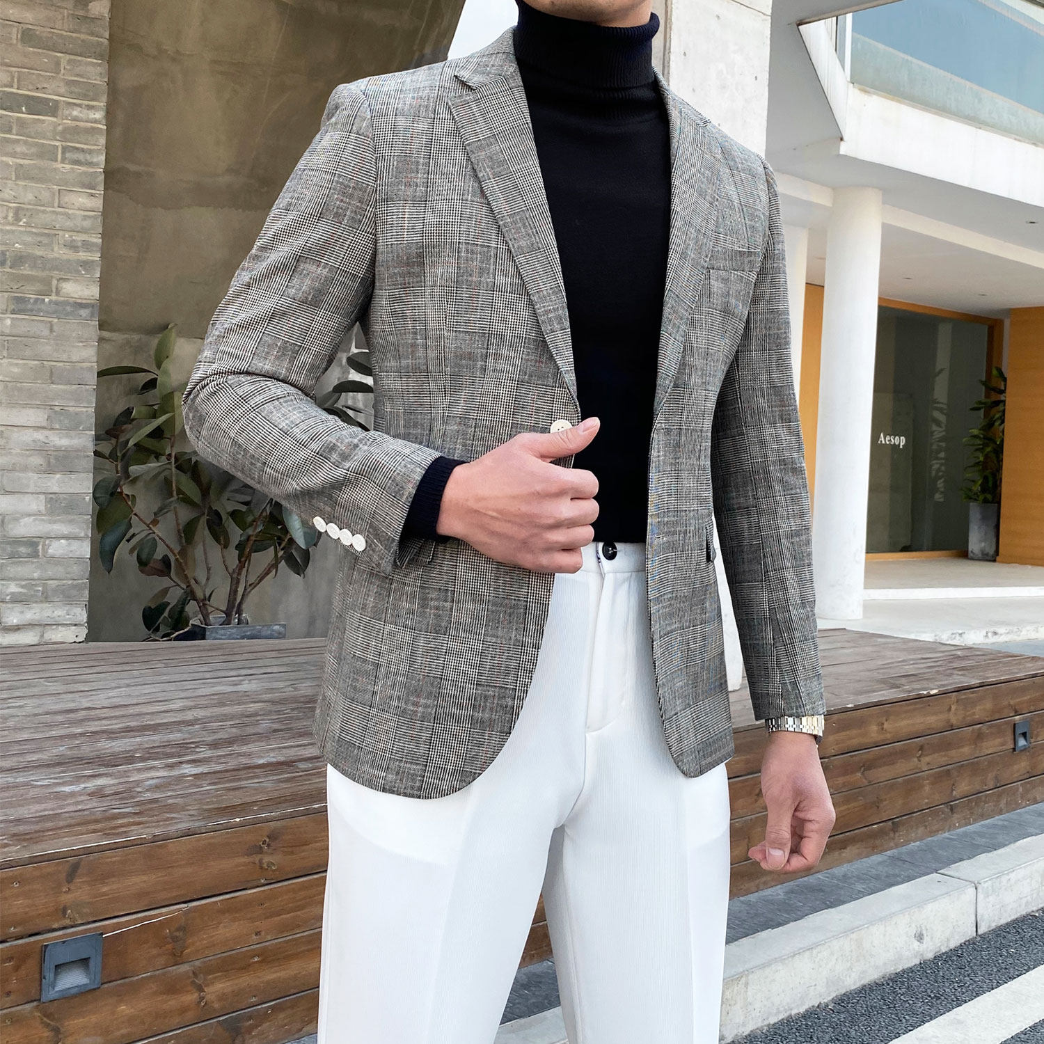 Клетчатый костюм мужской британский деловой повседневный формальный верхний легкий роскошный корейский стиль модный тонкий цельный маленький костюм мужская куртка