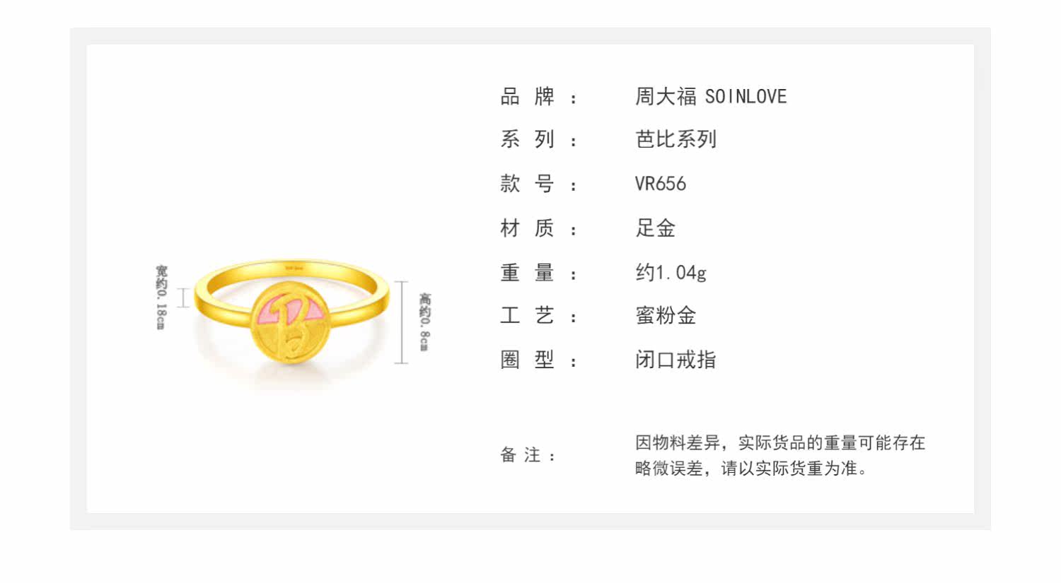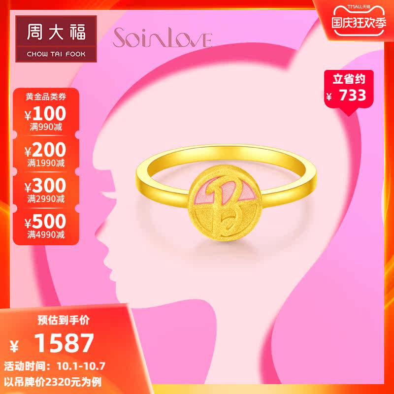 周大福 Soinlove Love Milk Milk Barbie серия B Бренд B-образный бренд розовый золото золото золото золото кольцо VR656 подарок