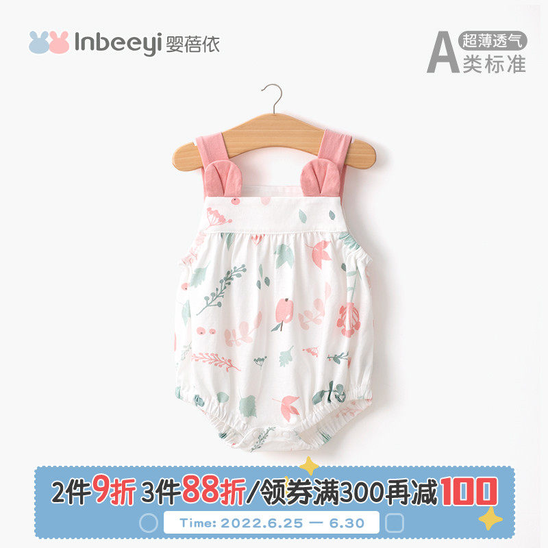 Детское летнее хлопковое тонкое боди для девочек, эффект подтяжки, цветочный принт