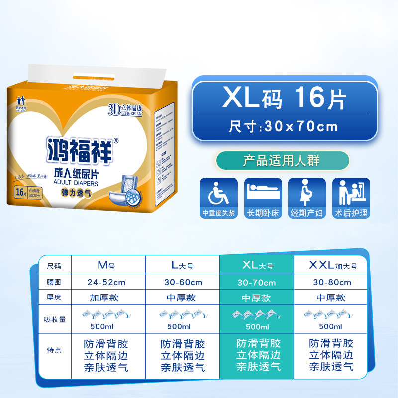 Моча мочи с большими взрослыми мочи в Hongfuxian не влажная. Пожилые люди используют мужчин и женщин с утолщенными прокладками мочи 16 столов 30x70 см